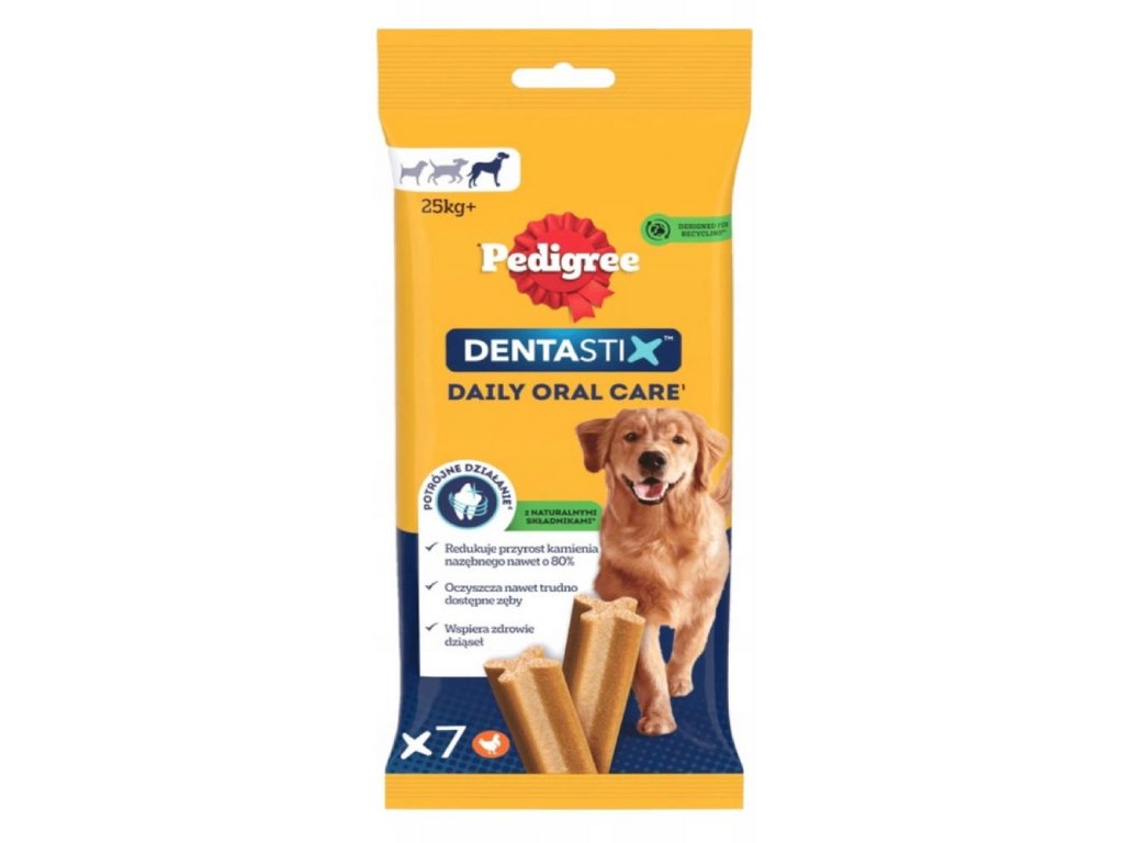 Výrobek je určen ke žvýkání a není vhodný pro psy o hmotnosti nižší než 25kg. Není vhodný pro štěňata mladší 4 měsíců.Doporučené dávkování: velká plemena např. labrador - podávejte 1 tyčinku denně.Složení: obiloviny, vedlejší výrobky rostlinného původu, minerální látky, masoa výrobky živočišného původu.Deklarované jakostní znaky: proteiny 9,5%, tuky 2,5%, popel 6,1%, hrubá vláknina 2,4%, energie 325 kcal/100g.Po otevření spotřebujte do 14 dnů.Čerstvá pitná voda musí být neustále k dispozici.Doplňkové parametry