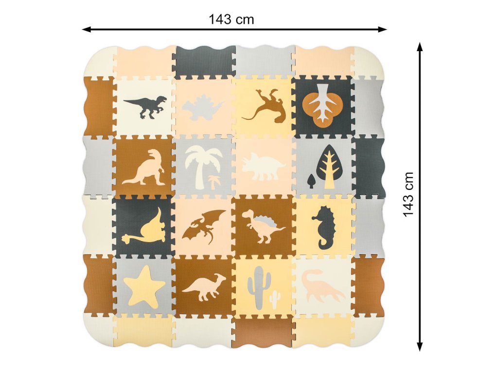 Pěnová podložka na puzzle / ohrádka 36el. dinosauři 143cm x 143cm x1cm