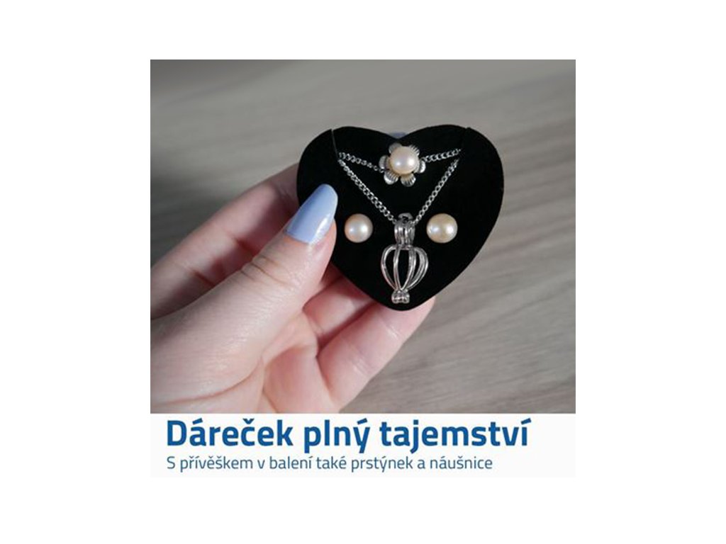 Perla přání v perlorodce s řetízkem, náušnicemi a prstýnkem
