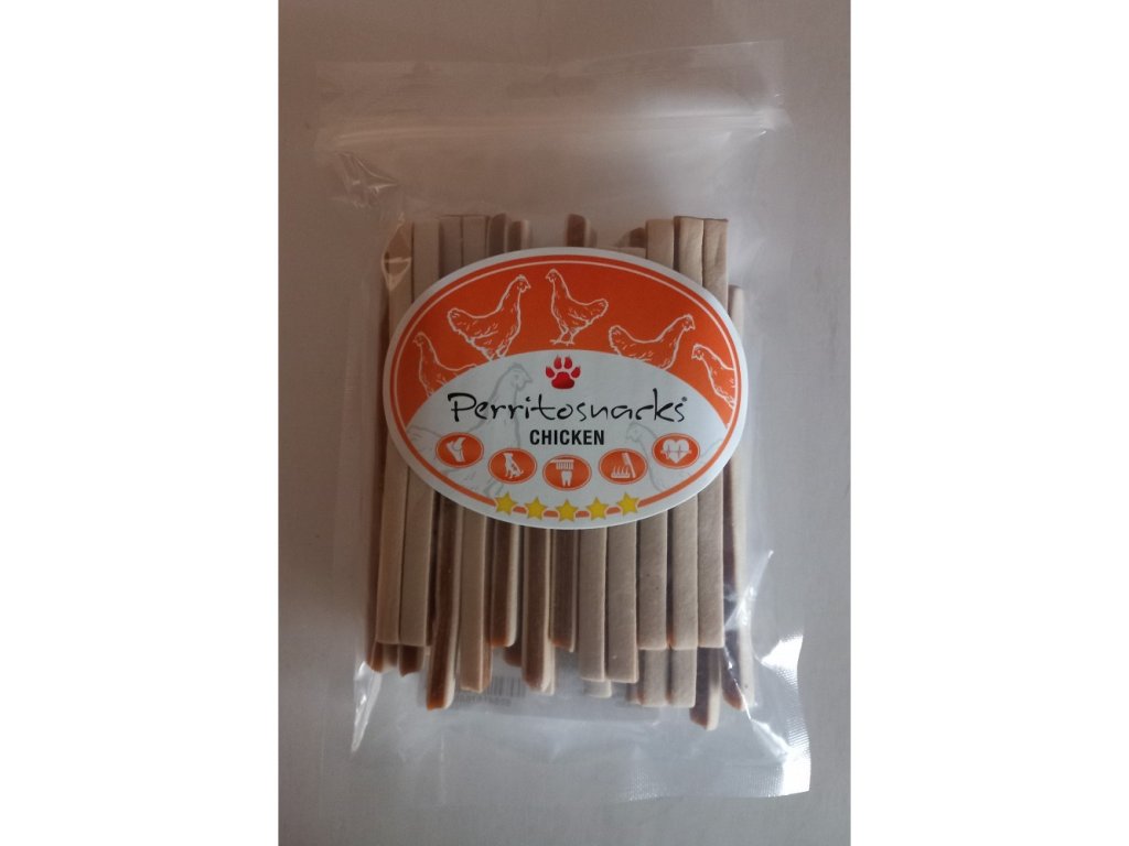 Zdravý pamlsek, obsahuje málo tuku a hodně bílkovin. Sušený horkým vzduchem. 100% přírodní. Není určeno pro lidskou spotřebu. Složení: kuřecí maso, treska, škrob, přírodní glycerin.Analytické složky: hrubý protein 26%, hrubý tuk 2,5%, hrubá vláknina 1%, hrubý popel 3,5%, vlhkost 35% Dbejte na dostatek čerstvé vody.Doplňkové parametry