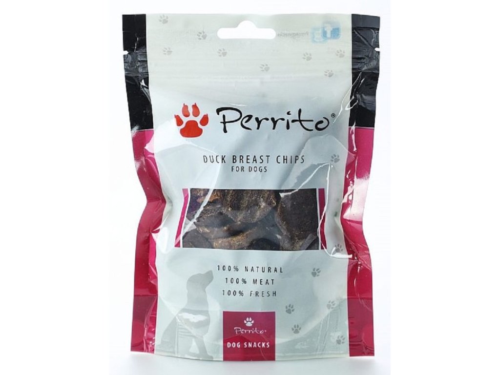 Zdravý pamlsek, obsahuje málo tuku a hodně bílkovin. Sušené horkým vzduchem. 100% přírodní. Nekonzumujte absorbér kyslíku. Není určeno pro lidskou spotřebu.Složení: kachní masoAnalytické složky: hrubý protein 54%, hrubý tuk 2,5%, hrubá vláknina 1%, hrubý popel 7%, vlhkost 18%.Dbejte na dostatek čerstvé vody.Doplňkové parametry