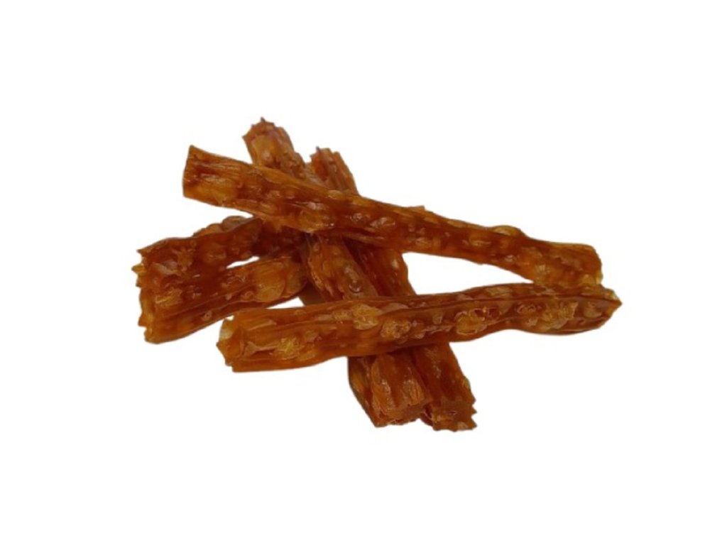 Žvýkací dentální tyč s kuřecí příchutí. Složení: kuřecí maso, přírodní glycerin,rostlinný protein,škrob, obiloviny. Analitické složky: vlhkost 11%, hrubý protein 11%, popel 1%, hrubý tuk 4%, vláknina <0,5% Žvýkací dentální tyč S (16cm) V balení 100ks Dbejte na dostatek čerstvé vody.Doplňkové parametry
