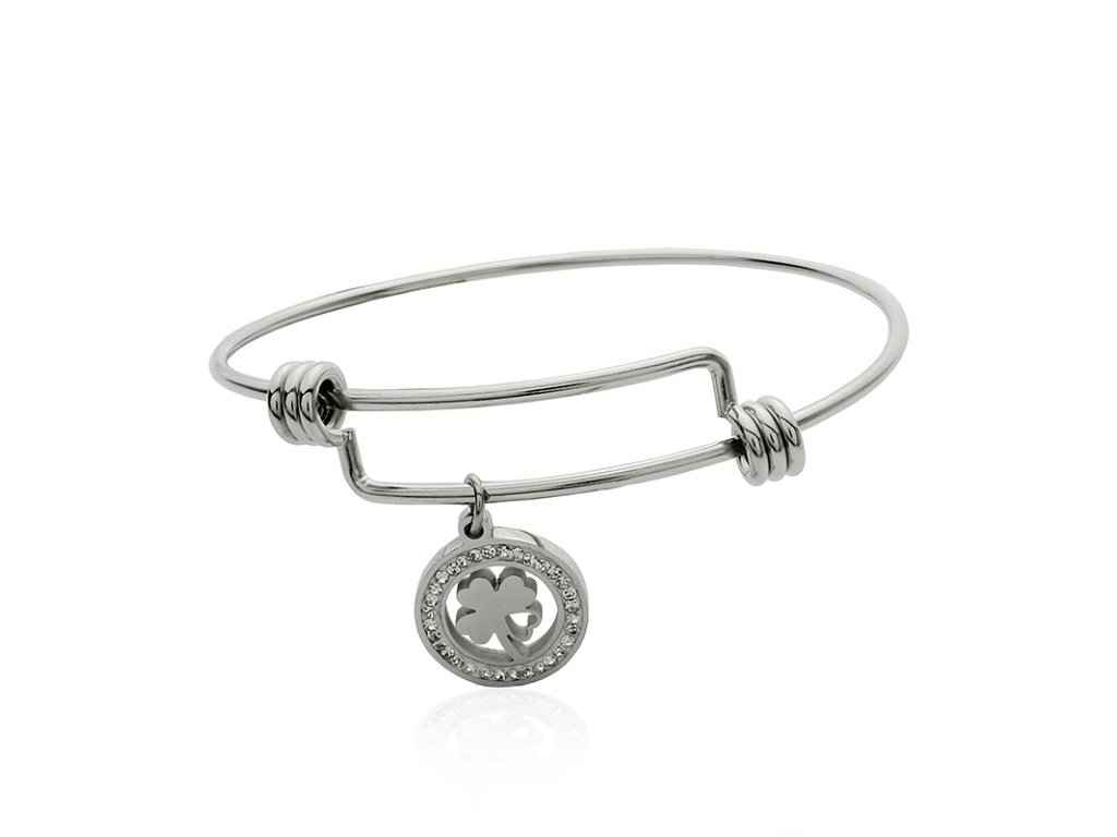 Pevný ocelový náramek čtyřlístek se zirkony S358100