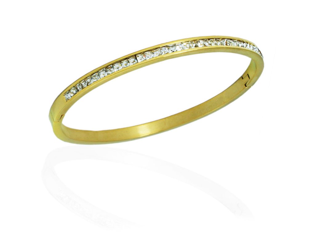 Pevný ocelový náramek se zirkony zlatý S11139120