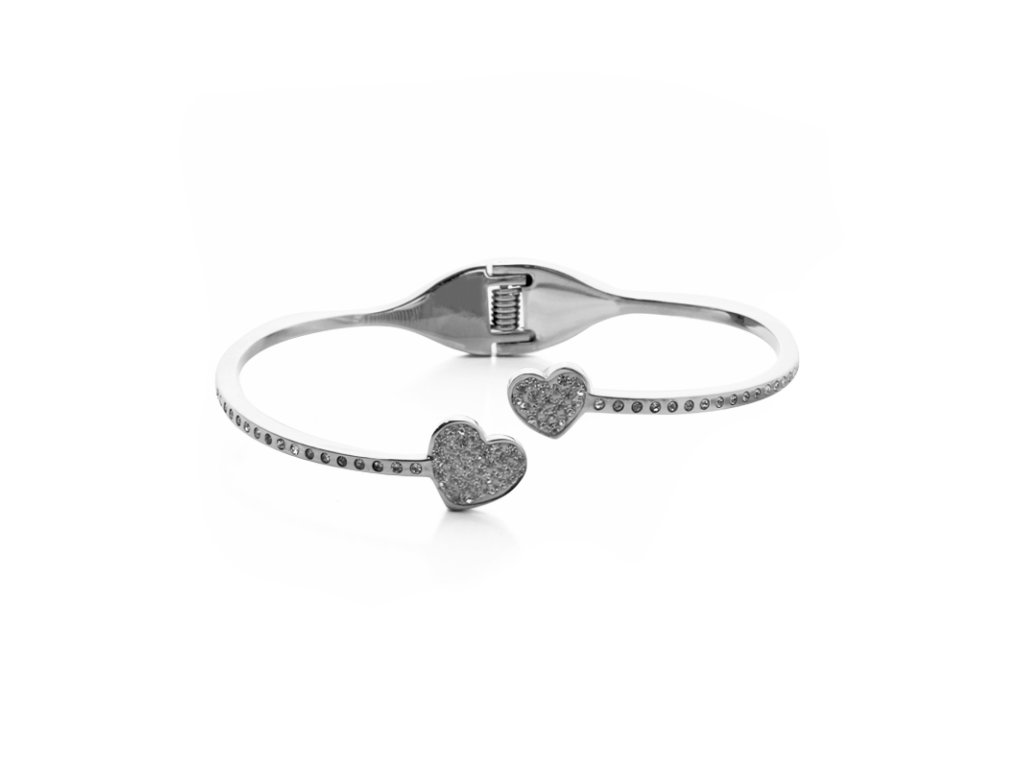 Pevný ocelový náramek srdíčka se zirkony S815120