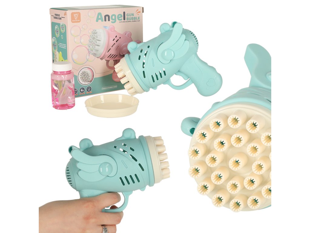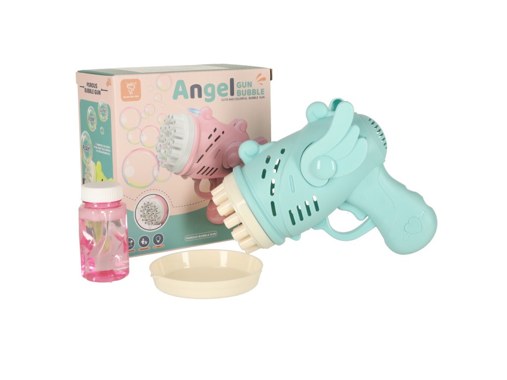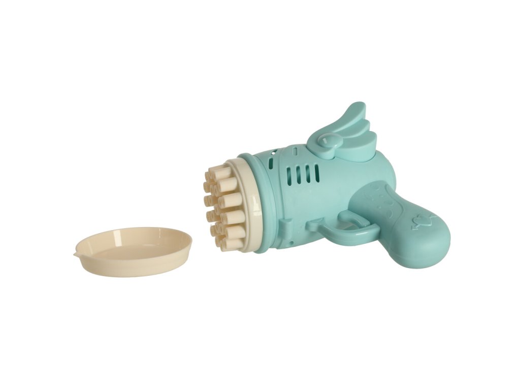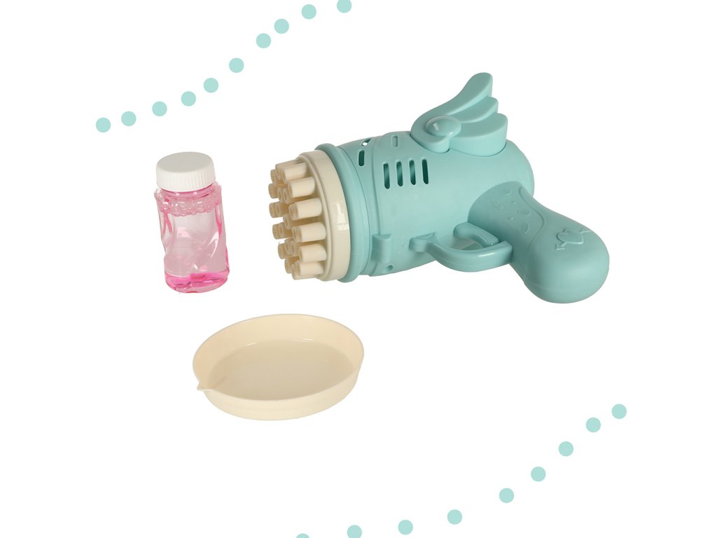 Pistole na mýdlové bubliny je výrobek, díky kterému je vypouštění bublin rychlé, působivé a rozhodně mnohem zábavnější. Stačí jedno tlačítko a z hlavně vyletí spousta malých bublinek!