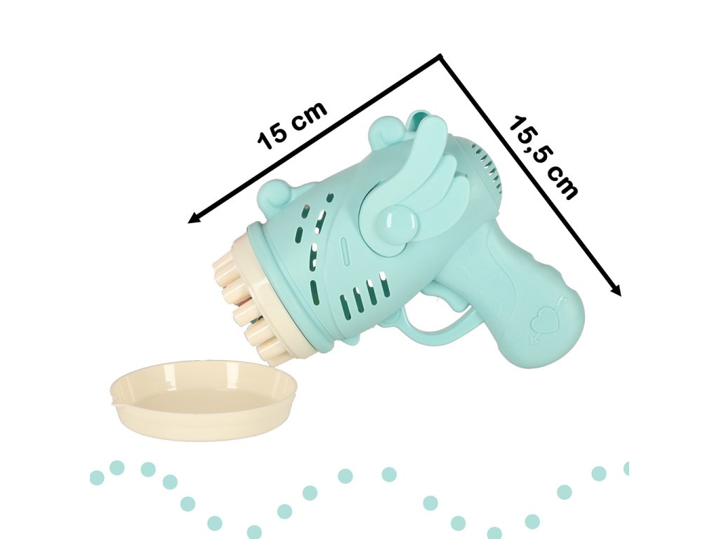 Pistole na mýdlové bubliny je vyrobena z odolných a pevných materiálů, takže mýdlovou zábavu nemůže nic přerušit! Můžete si být jisti, že výrobek přežije nejeden střet s dětmi připravenými prasknout každou malou bublinu!