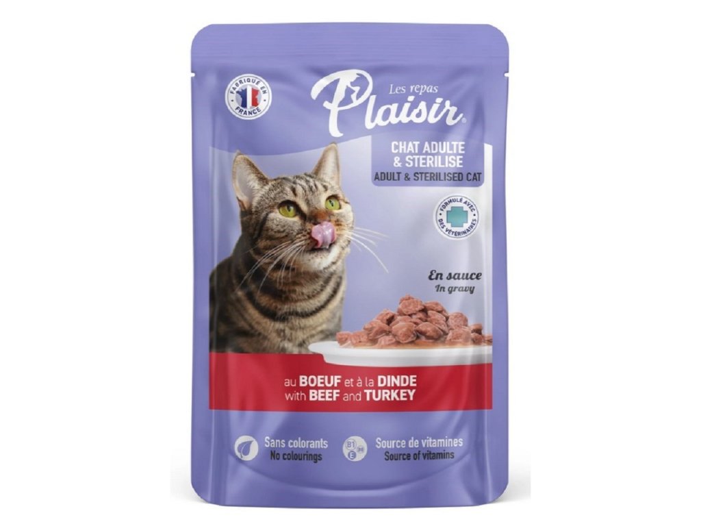 Složení: maso a produkty z masa (hovězí maso 4%, krůtí maso 4%), minerální látky, deriváty rostlinného původu.Deklarované jakostní znaky: hrubý protein 9%, hrubá vláknina 0,5%, hrubý tuk 5%, hrubý popel 2,5%, vlhkost 82%.Doplňkové parametry