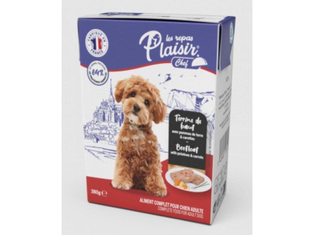 Plaisir Chef 380g TETRAPACK pro dospělé psy Hovězí se sladkými bramborami a mrkví PATÉ AKCE