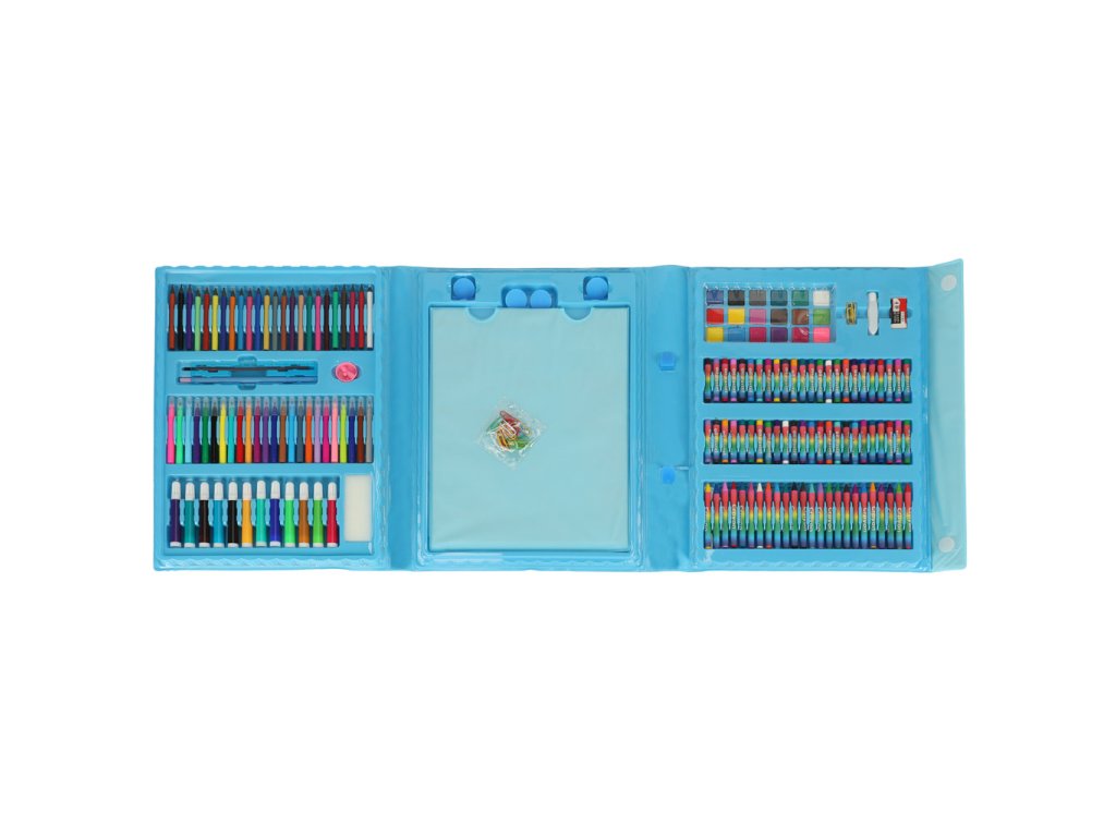 Podpořte představivost a tvůrčí schopnosti svého dítěte pomocí této výtvarné sady. Kouzelný kufřík obsahuje vše potřebné ke hře: pastelky, fixy, pastely, barvy a další užitečné předměty pro výtvarné tvoření: pravítko, gumu, štětec atd.
