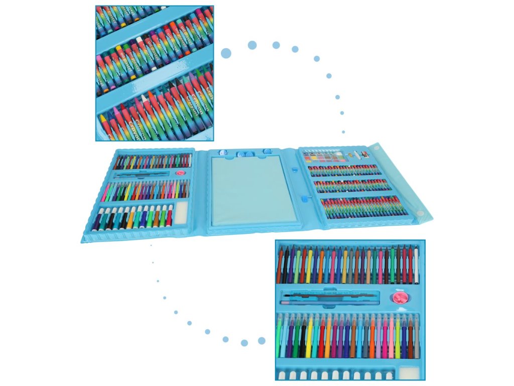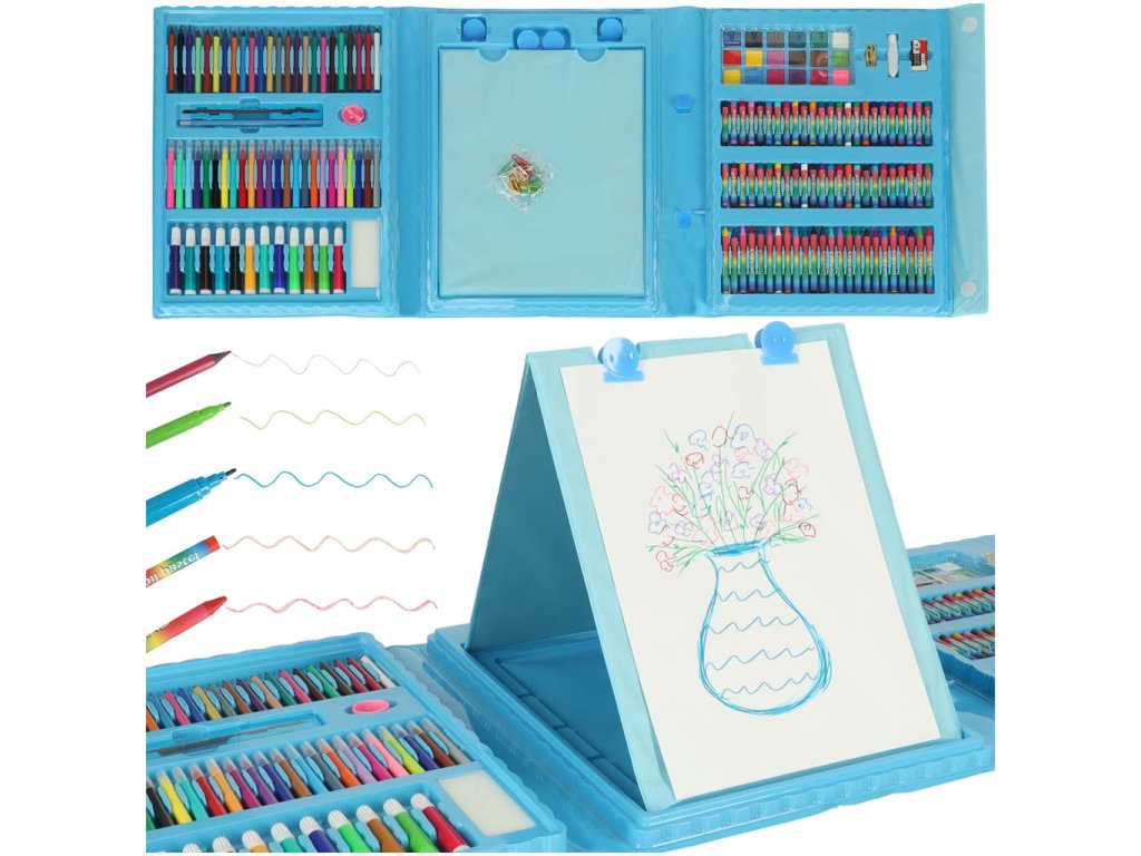 Výtvarná sada je určena nejen dětem: bohatá paleta barev a různé druhy náčiní jsou ideální pro skicování, vybarvování a mnoho dalších činností. Probuďte v sobě umělce a vyjádřete se barvami!