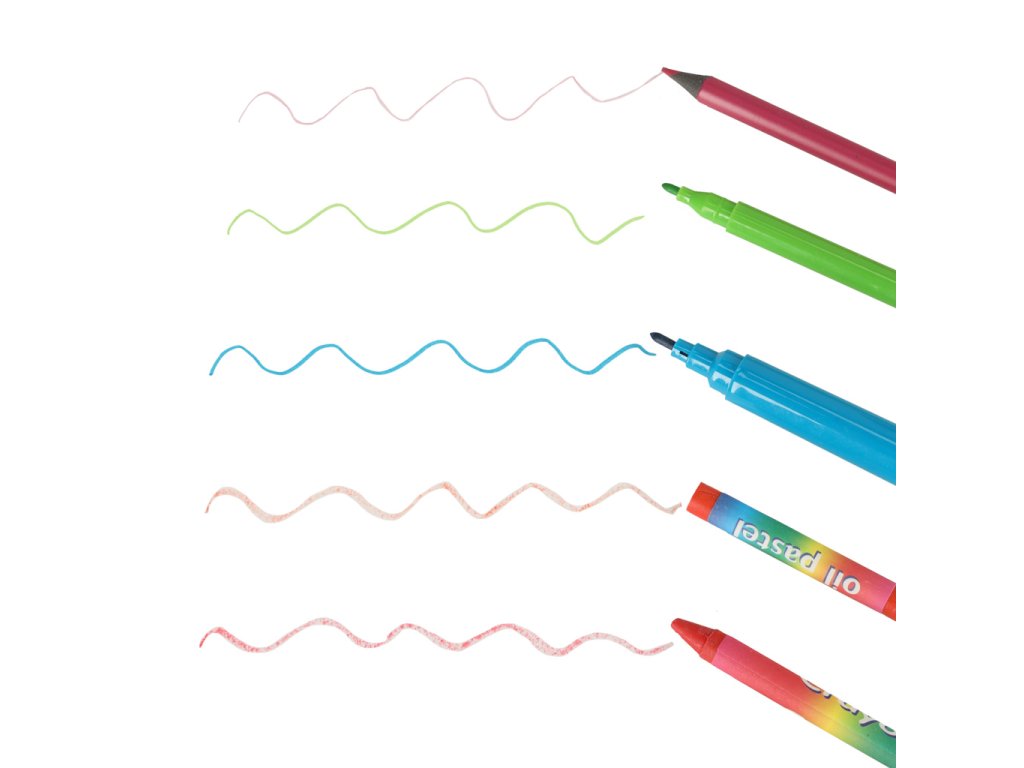 1. Pastelky, pastely a fixy vynikající kvality- mají živé, intenzivní barvy, neblednou a dokonale se roztírají na povrchu.