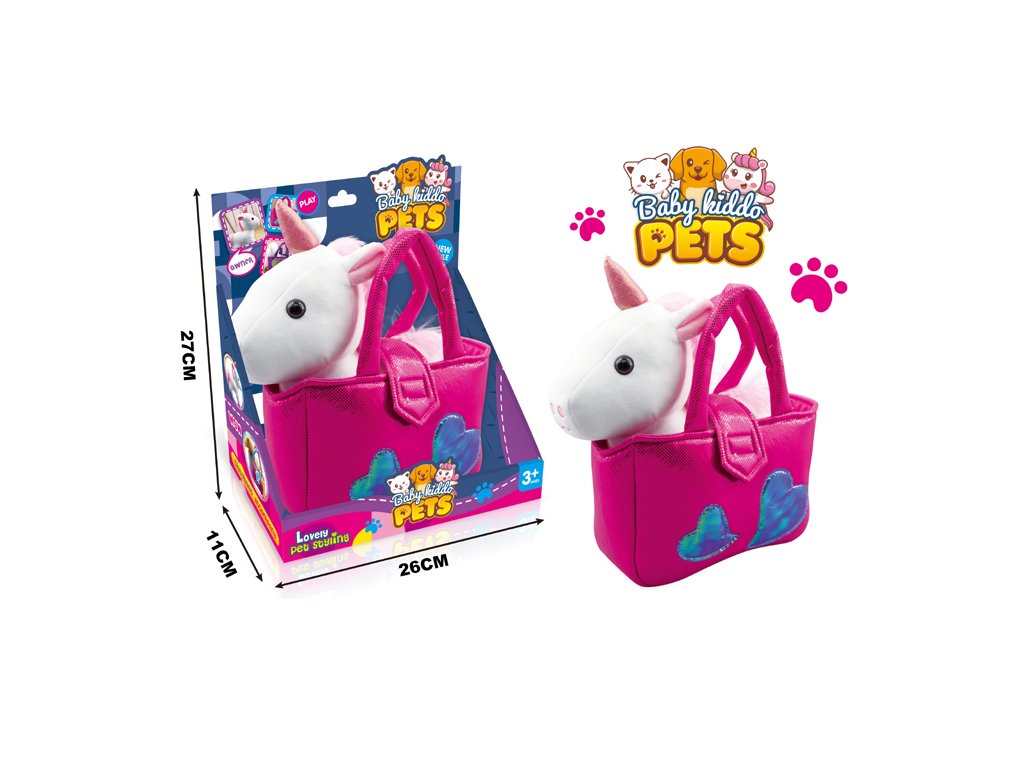 Plyšový jednorožec v kabelce
