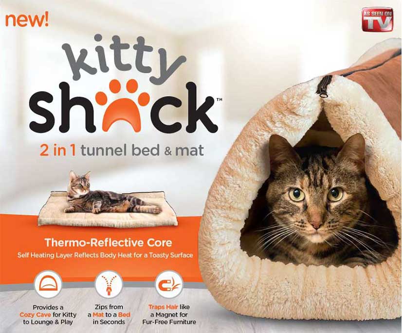 Položte podušku na gauč, sedačku, postel ale i na zem, prostě tam kde chce Vaše kočka lenošit. Kitty Shack je možné prát v pračce , je velmi jednoduché ji udržet čistou. Kočky milují skrýše, hraní i lenošení - to vše poskytuje tento plyšovový tunel. Kitty Shack je dostatečně velký i pro pro malé a střední psy.