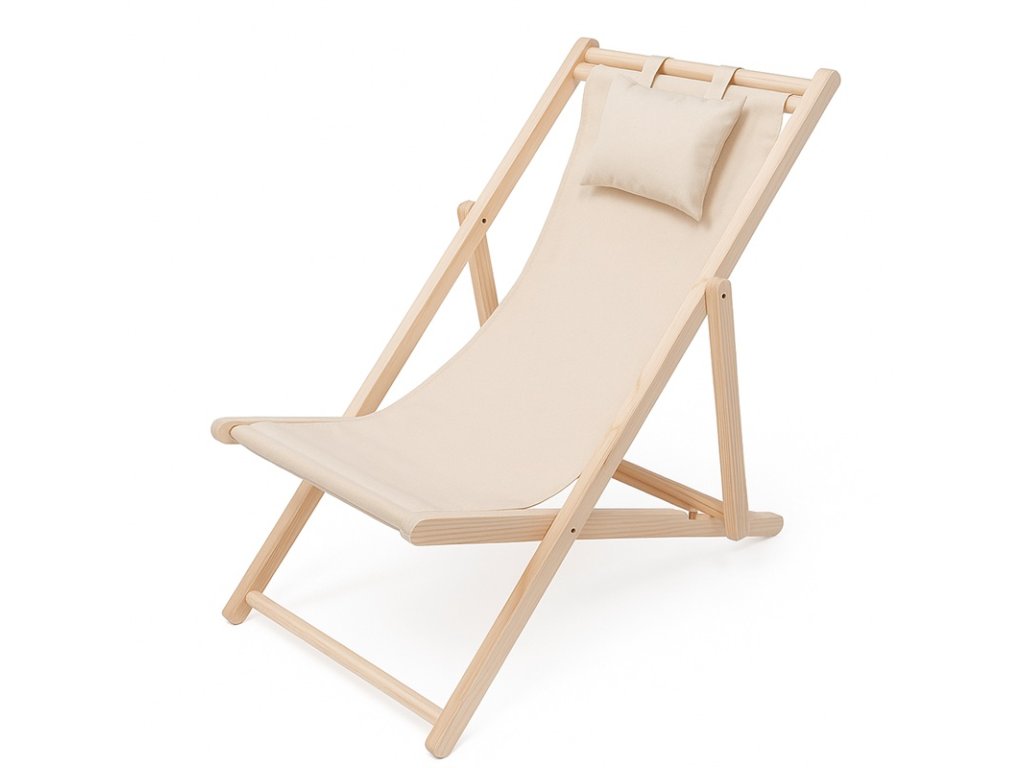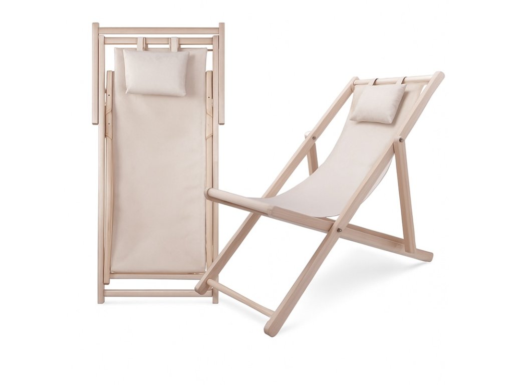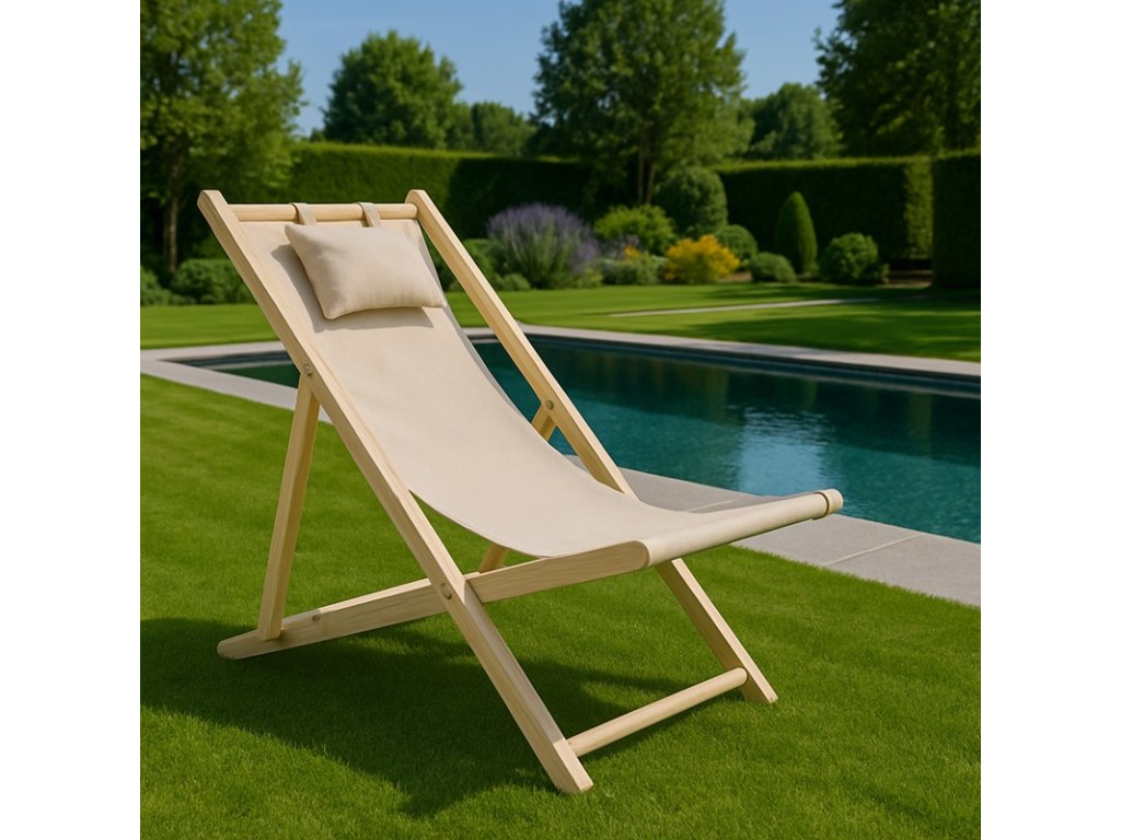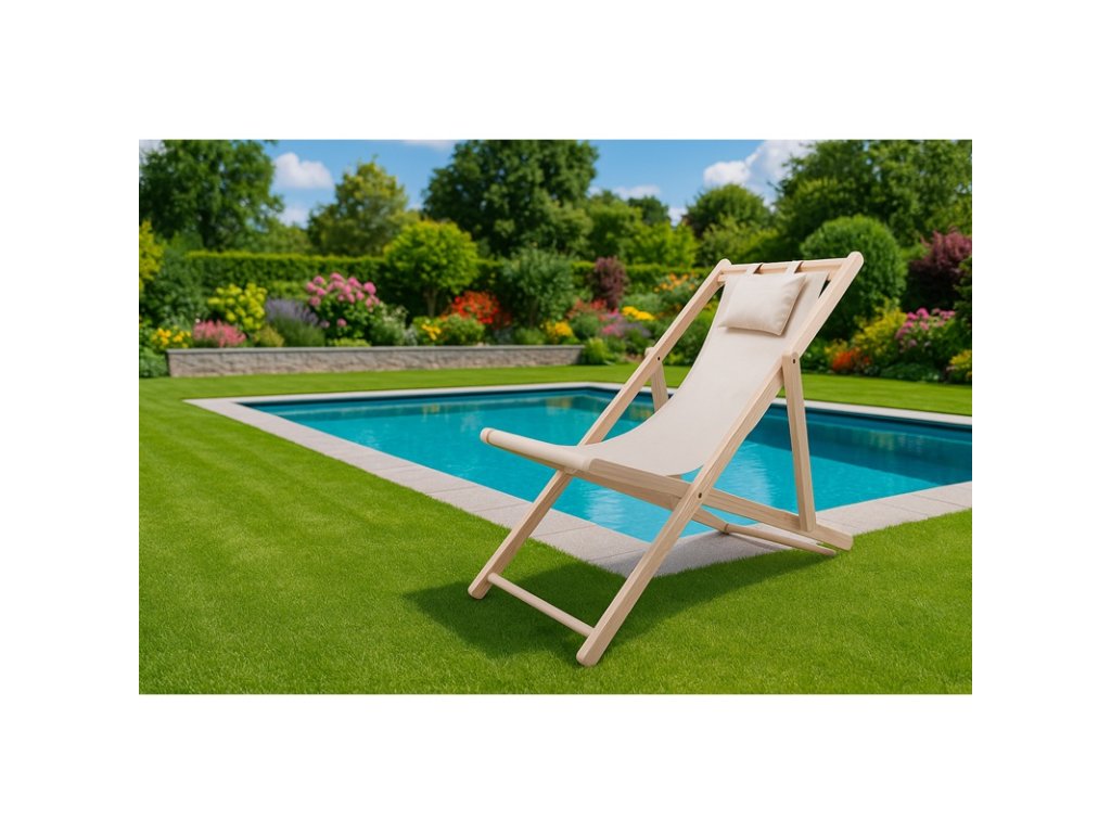 Pohodlné skládací dřevěné zahradní lehátko béžové