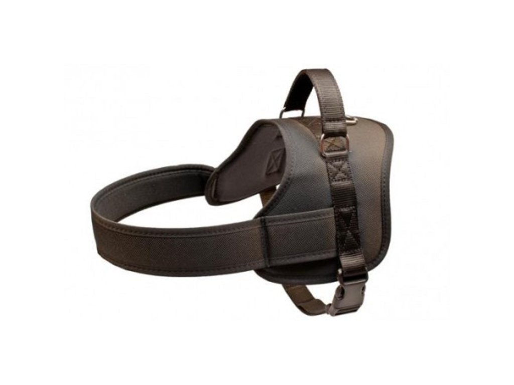 Postroj se používá v případech kdy je vhodné mít psa upoutaného v oblasti zad, zejména pro stopy a obranu, případně u slepeckých psů či tažných psů. Pro obranu by měl být postroj dostatečně robustní a vypodložený. Pro výcvik je také možné použít speciální postroje a ohlávky proti tahání.Robustní synteticý postroj pro ideální držení psa při obraně - pes nepřepadá dozadu. 30 cm široký pás pokrývající záda a boky psa, navrchu nylonové ucho. Nastavitelný nylonový pás šířky 2,5 cm s robustní plastovou přezkou pro uchycení pod břichem, přes hruď nastavitelný popruh 55 - 71cm.Obvod: 55 - 71cm - možnost nastaveníBarva: černáDoplňkové parametry