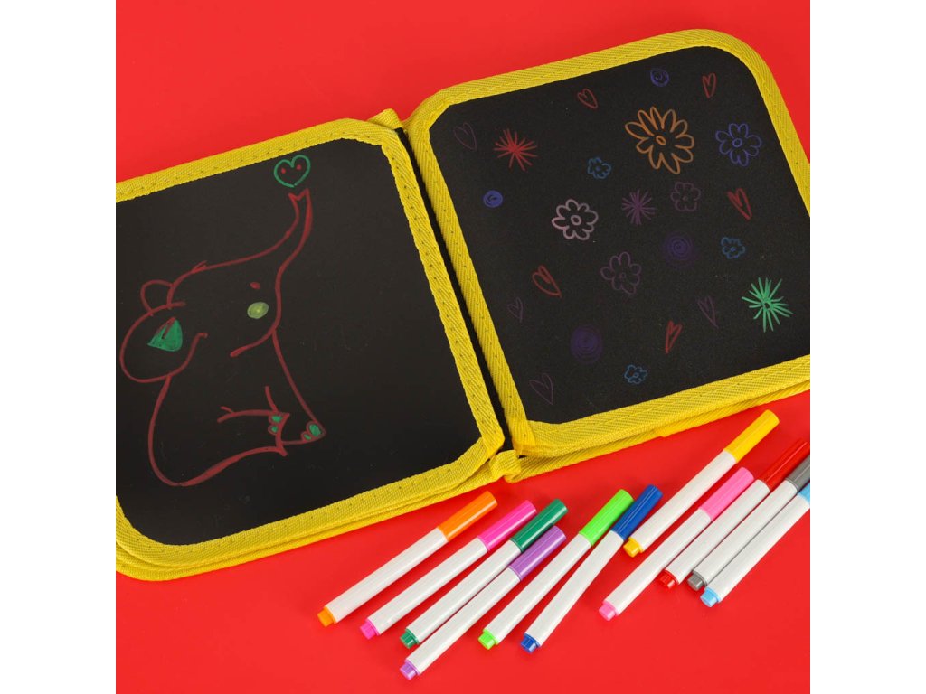- voděodolný sešit s černými stránkami vhodnými pro křídové fixy;