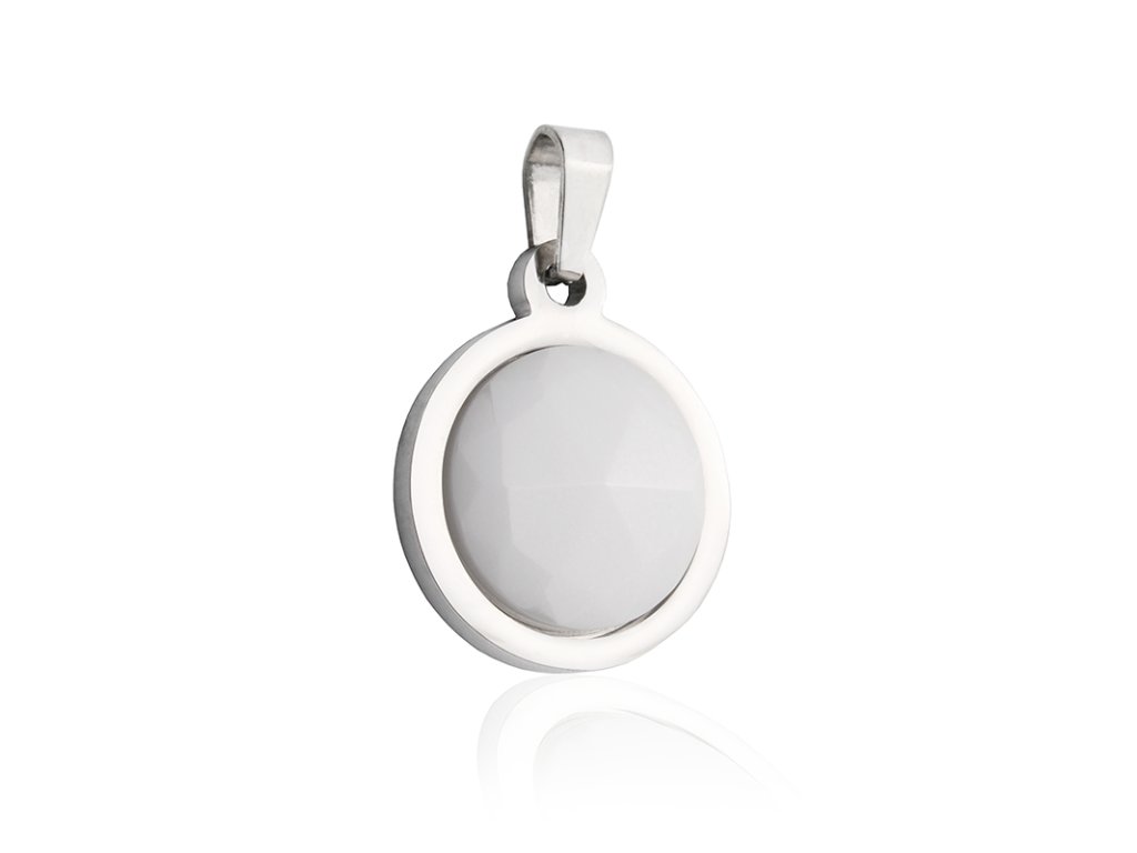 Přívěsek keramický bílý kruh z chirurgické oceli S661105
