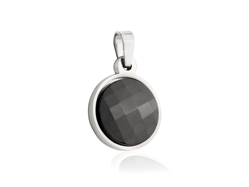 Přívěsek keramický černý kruh z chirurgické oceli S660105