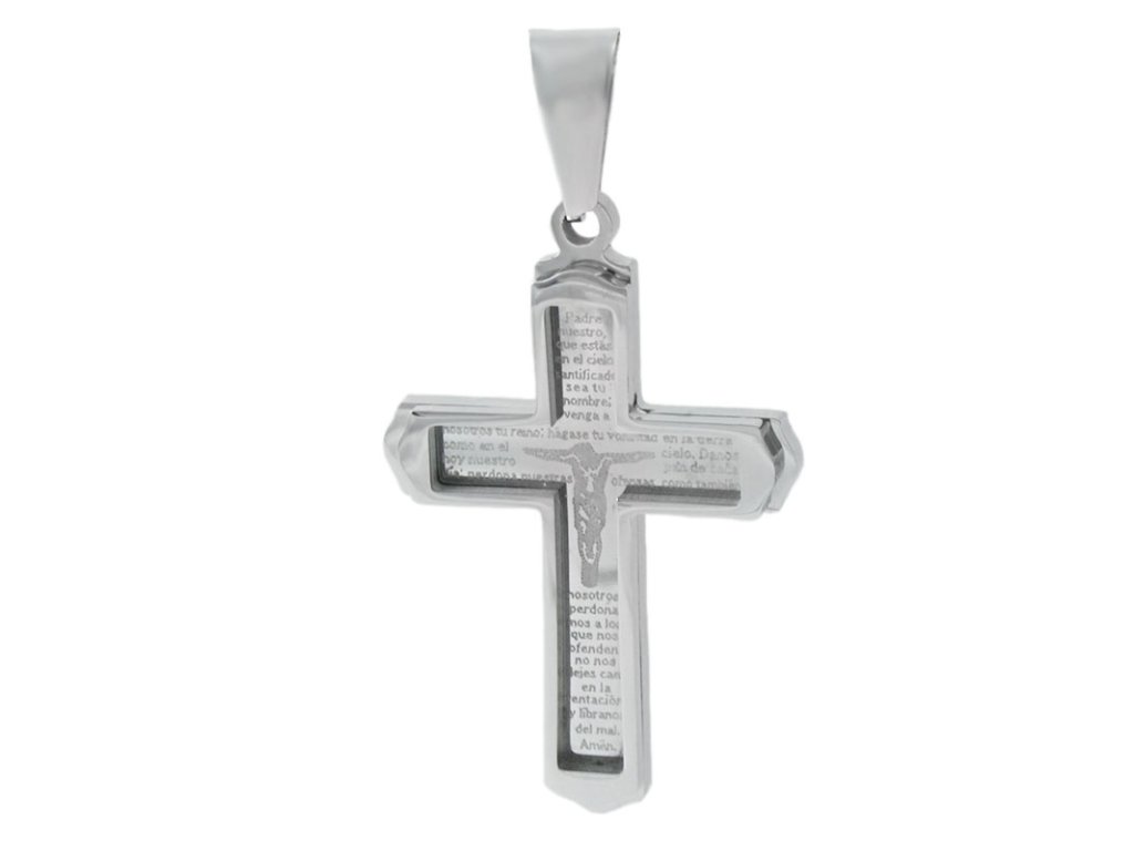 Přívěsek kříž s nápisy z chirurgické oceli S11212050
