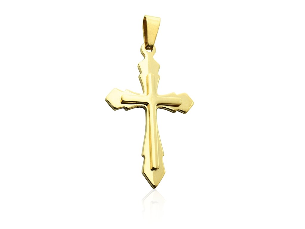 Přívěsek křížek gold 3,7 cm z chirurgické oceli S991035