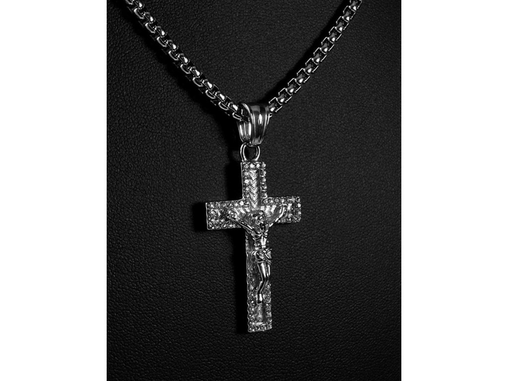 Přívěsek křížek s krystaly z chirurgické oceli S197080