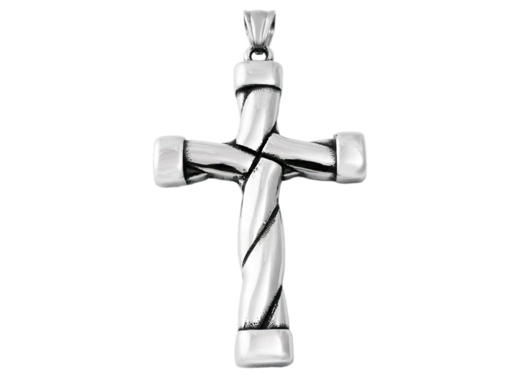 Přívěsek propletený kříž 6,4 cm z chirurgické oceli S11306080