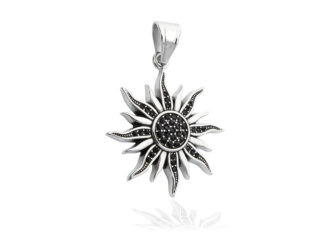 Přívěsek slunce s černými krystaly z chirurgické oceli S491065