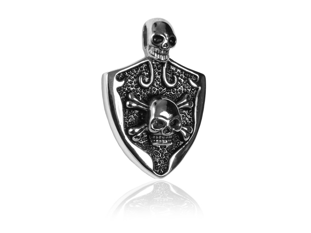 Přívěsek štít s lebkama z chirurgické oceli S256080