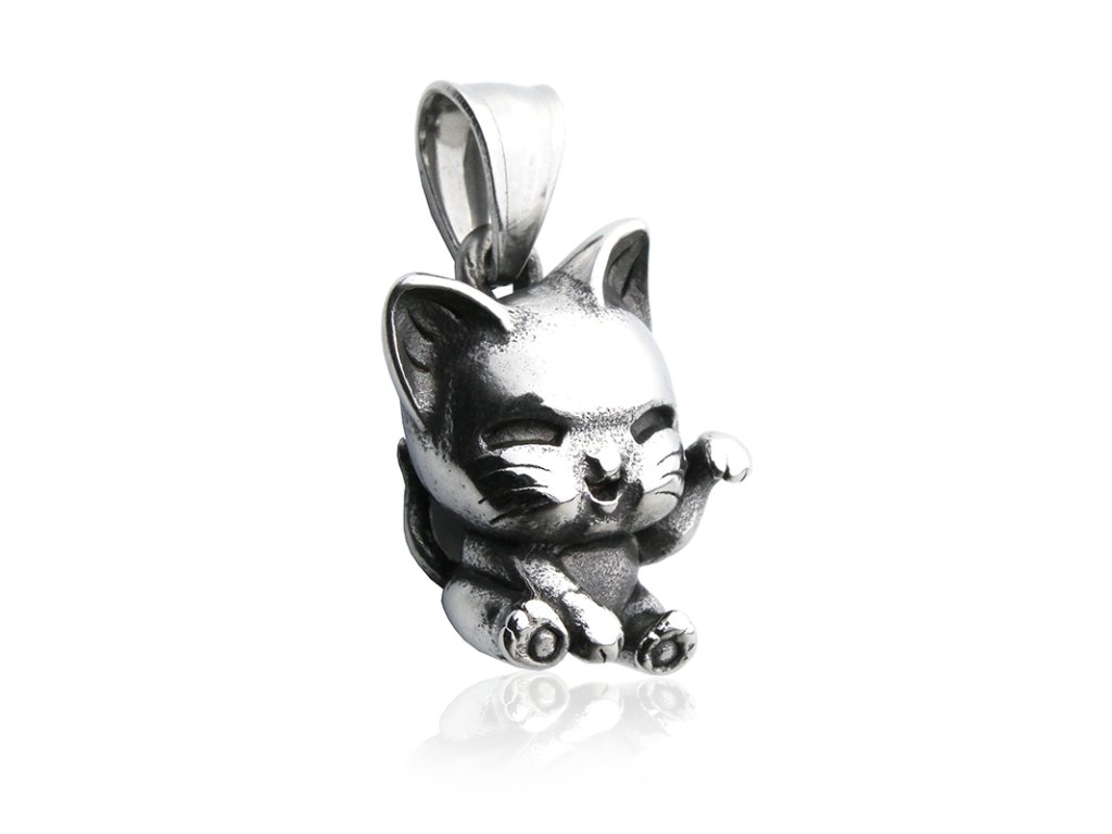 Přívěsek stříbrný kočka z chirurgické oceli S599080
