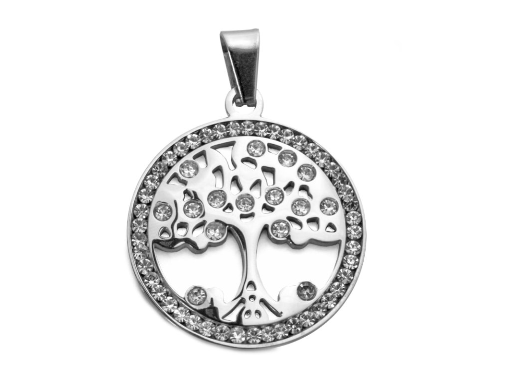 Přívěsek strom života z chirurgické oceli se zirkony S761100