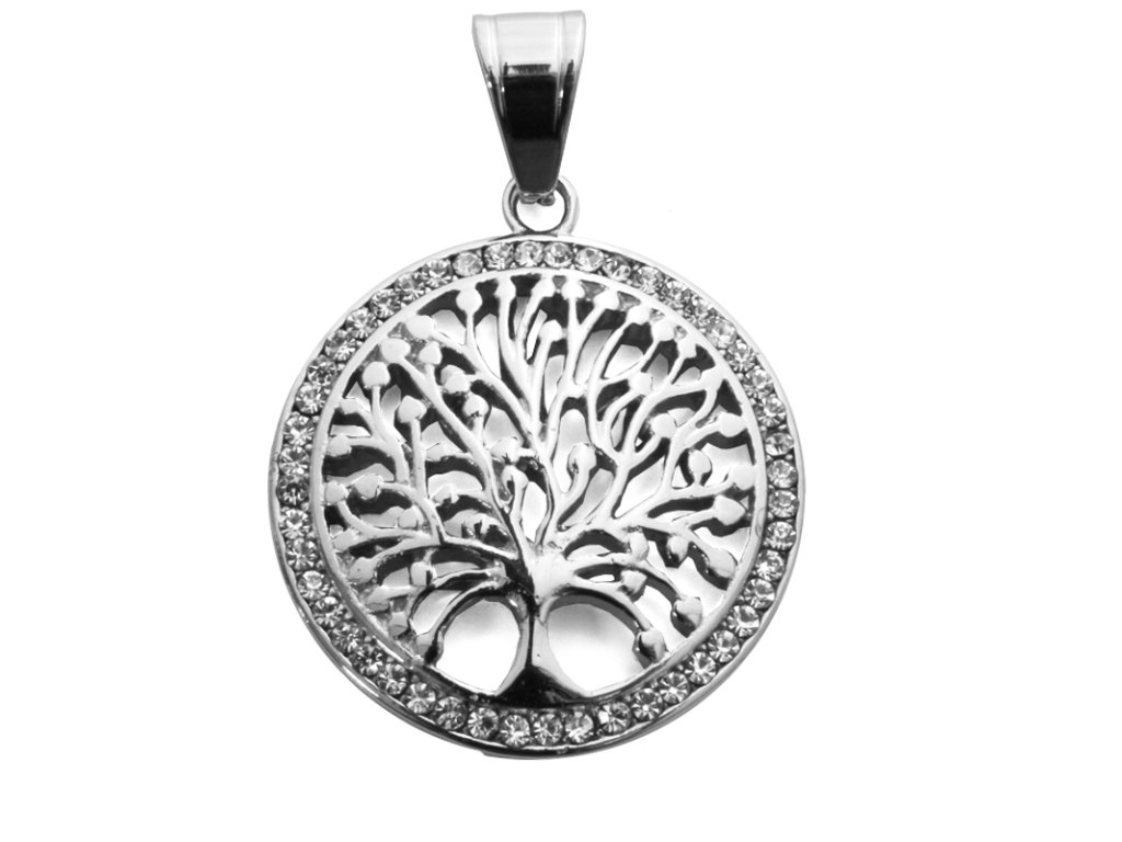 Přívěsek strom života z chirurgické oceli se zirkony S774100