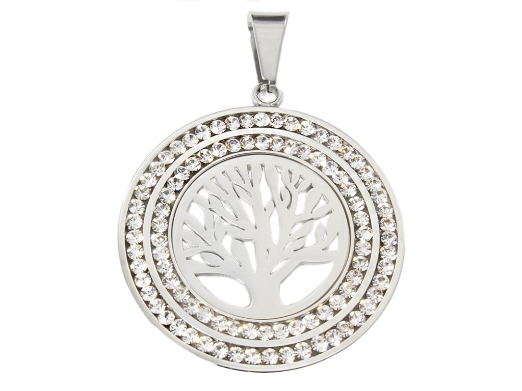 Přívěsek strom života z chirurgické oceli se zirkony S973100