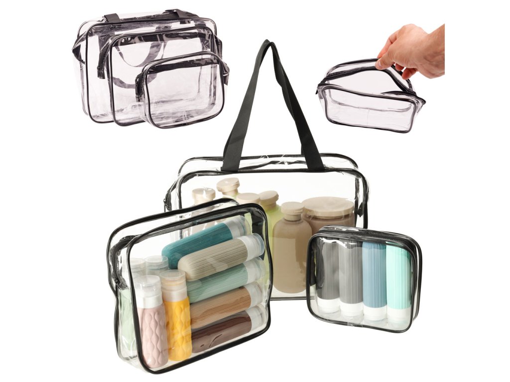 PRŮHLEDNÝ CESTOVNÍ ORGANIZÉR NA MAKE-UP DO LETADLA 3 KUSY