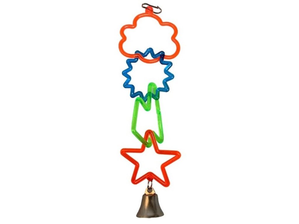 Plastová, barevná hračka se zvonečkem pro ptáky k zavěšení do klece. Délka : 23cmBarva: různé varianty