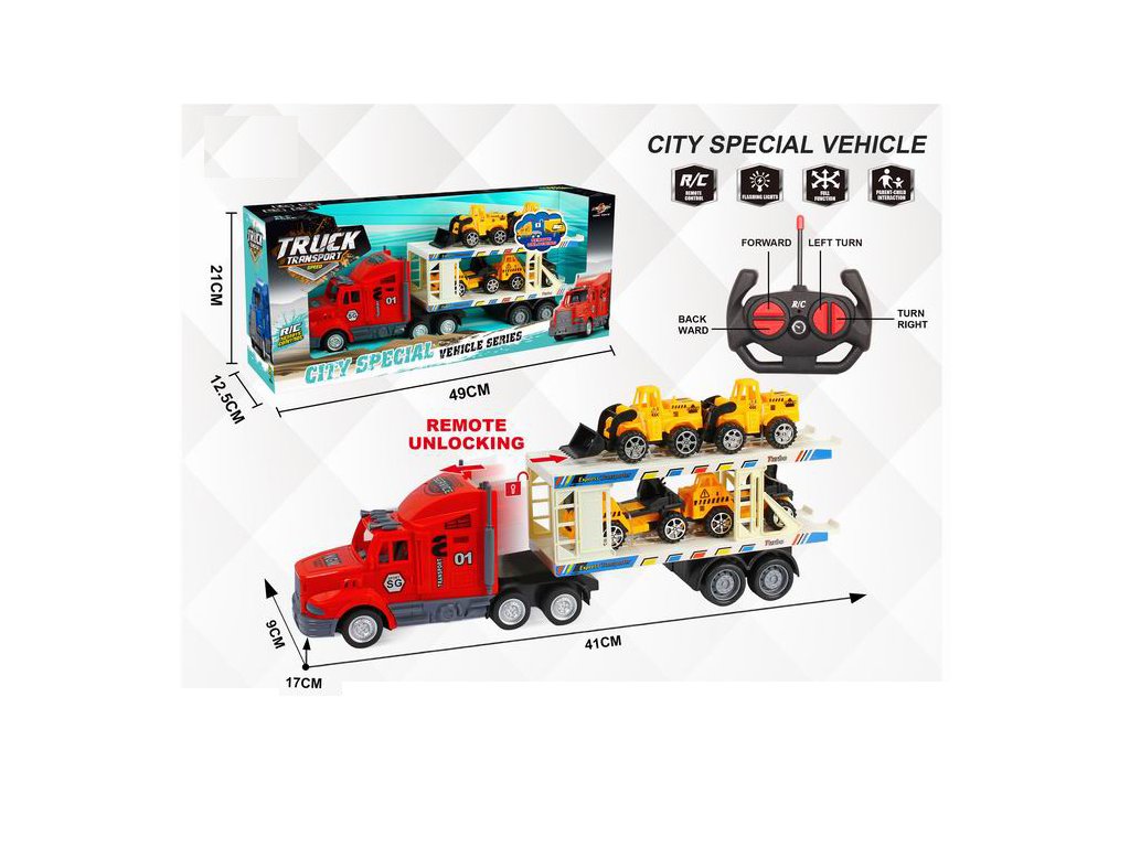 RC přepravník se 4 stavebními vozidly
