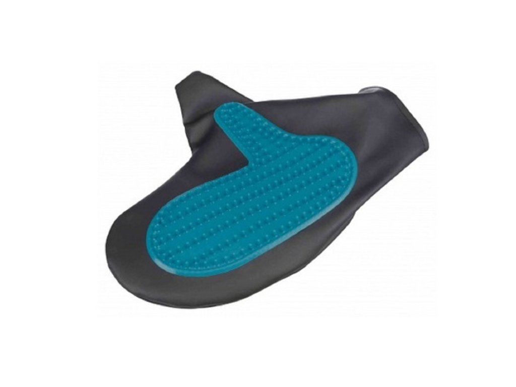 Masážní rukavice. Jedinečný desing s trojím účinkem trojhranných měkkých prstíků. Používá se na sucho i ve vodě při koupání. Pěna šamponu se pomocí rukavice pravidelně roznese a dostane se hluboko do podrůstající srsti. Rukavice odsrtaňuje uhynulé parazity, jemně masíruje, zjemňuje srst. Vhodná pro všechny rasy psů.Doplňkové parametry
