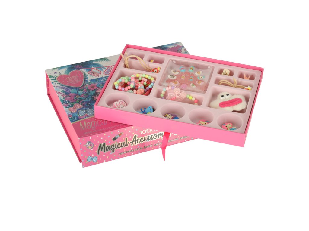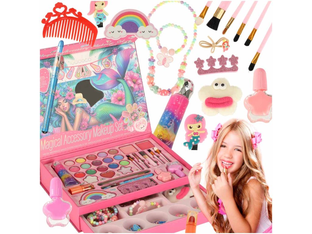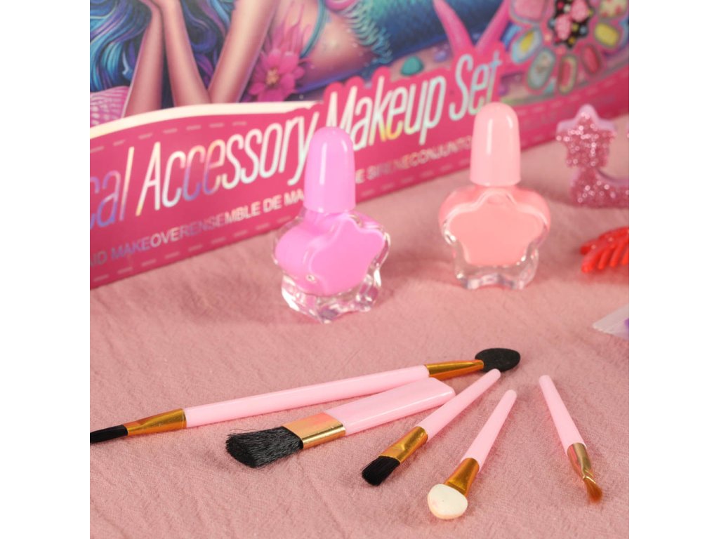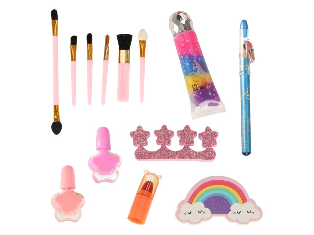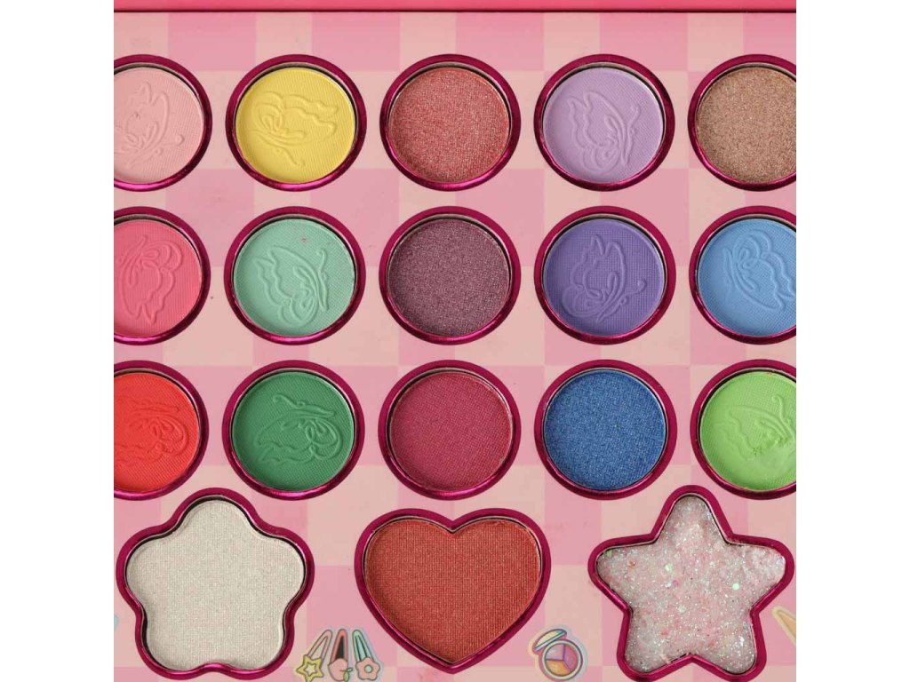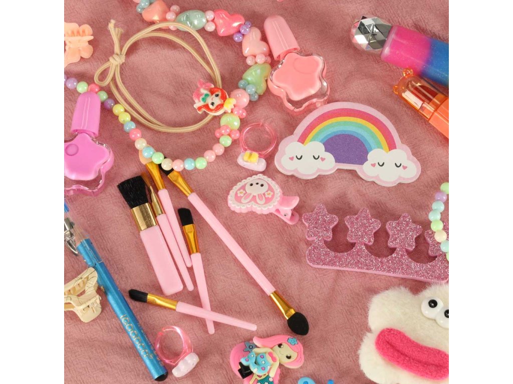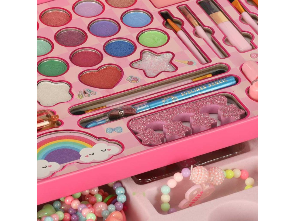Kosmetická truhla obsahuje pouze bezpečné líčidla pro děti, přizpůsobená jejich jemné pokožce - lehká, snadno omyvatelná a hypoalergenní. Jedná se nejen olíčicí kosmetiku proděti, ale také o kompletní sadu doplňků pro líčení a sadu pro úpravu nehtů v jednom. Pomocí přiložených štětců, stínů,laků, kufříkuse zrcátkem a barevnýchdoplňků se dítě můžekreativně a bezpečně vyjádřit a zároveň se zabavit.