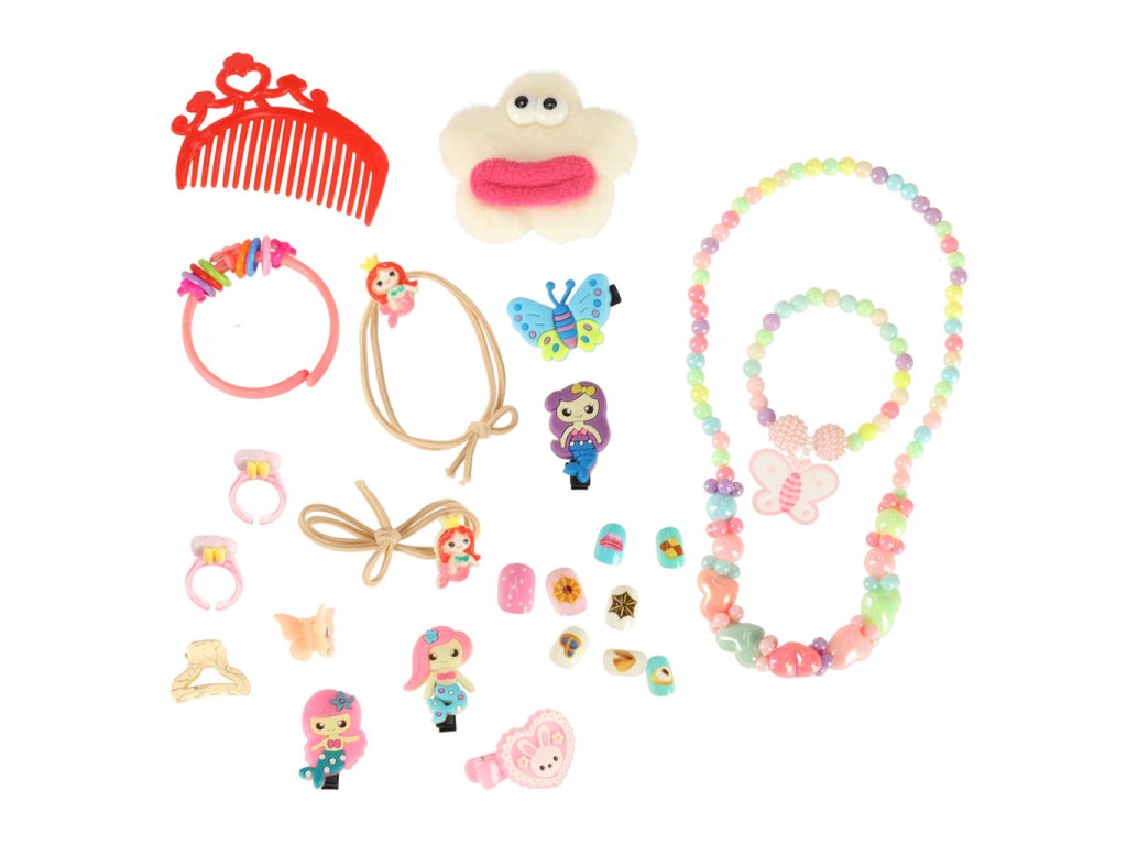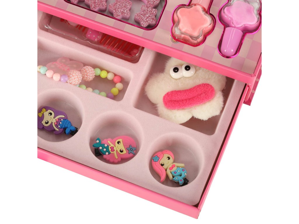 Praktický kufřík s kosmetikou na lakování nehtů a zrcátkem - pohádková truhlička s mořskou pannou, ideální na hraní a ukládání doplňků.