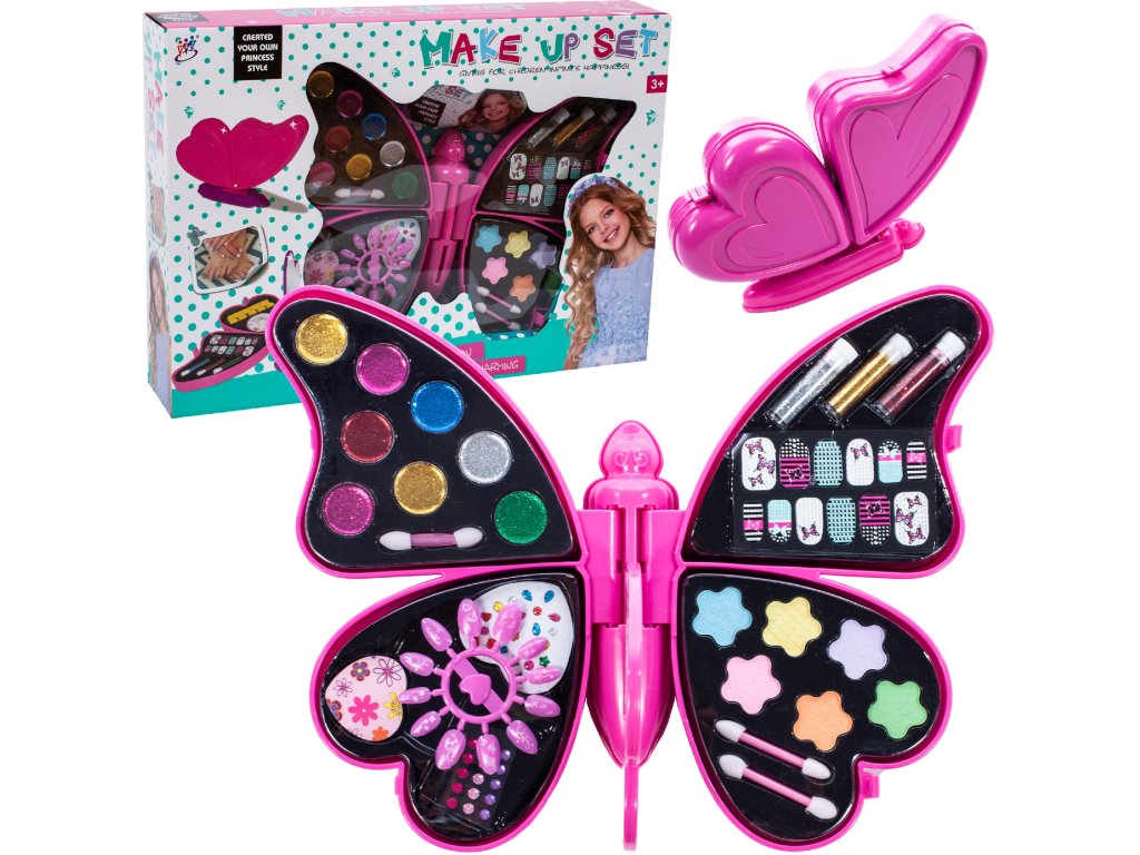 7121 107290 Rozměr rozloženého motýla: 34,0 x 27,0 x 16,0 cm Rozměr složeného motýla: 27,0 x 5,0 x 18,0 cm V sadě: - oční stíny - lesky na rty - aplikátory - třpytky - nálepky na nehty - ozdoby - šablona - pilník - zrcátko