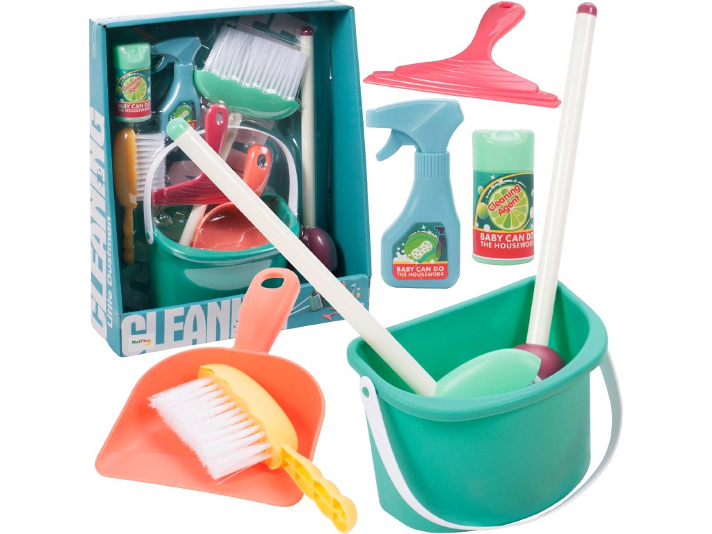 Délka mopu: 43 cm • Délka velkého kartáče: 34 cm • Malá smetáček: 17 cm • Stěrka na okna: 14 x 12 cm • Lopatka: 18 x 12 cm • Kbelík: 17,5 x 12,5 x 11 cmDoplňkové parametry