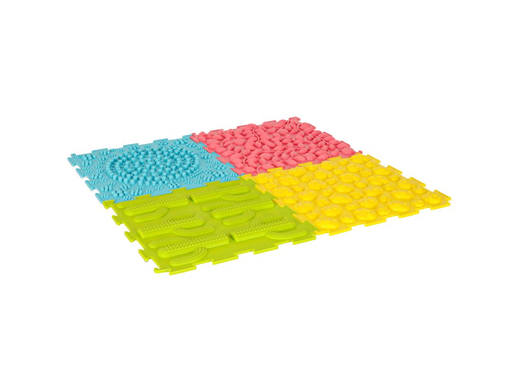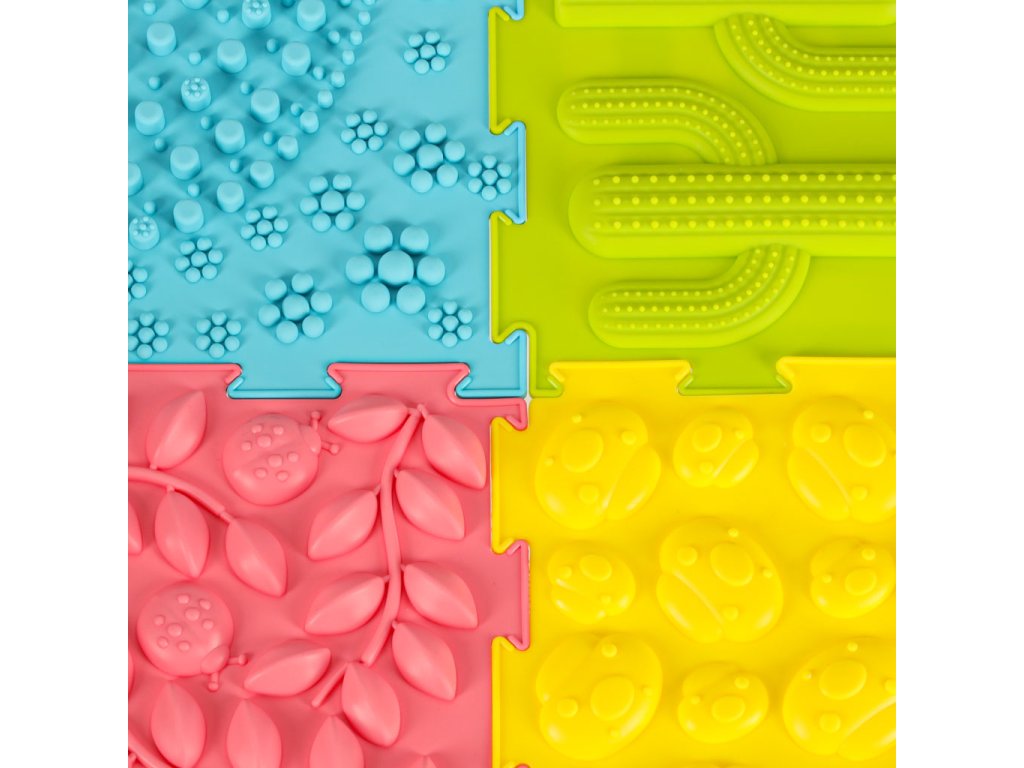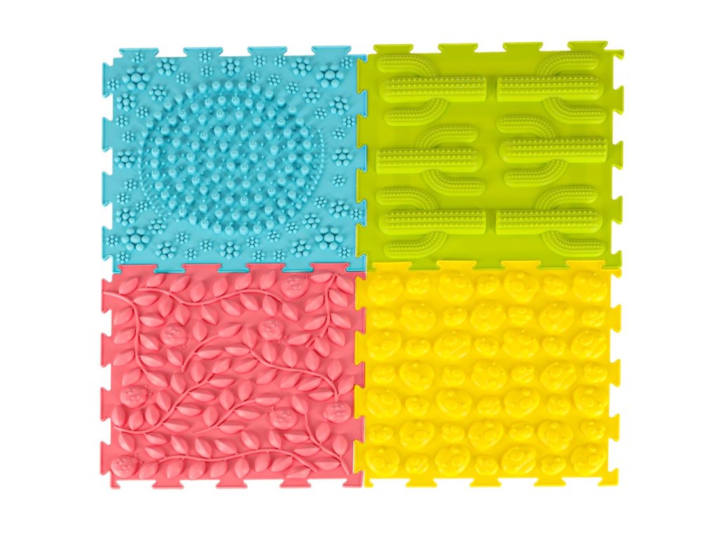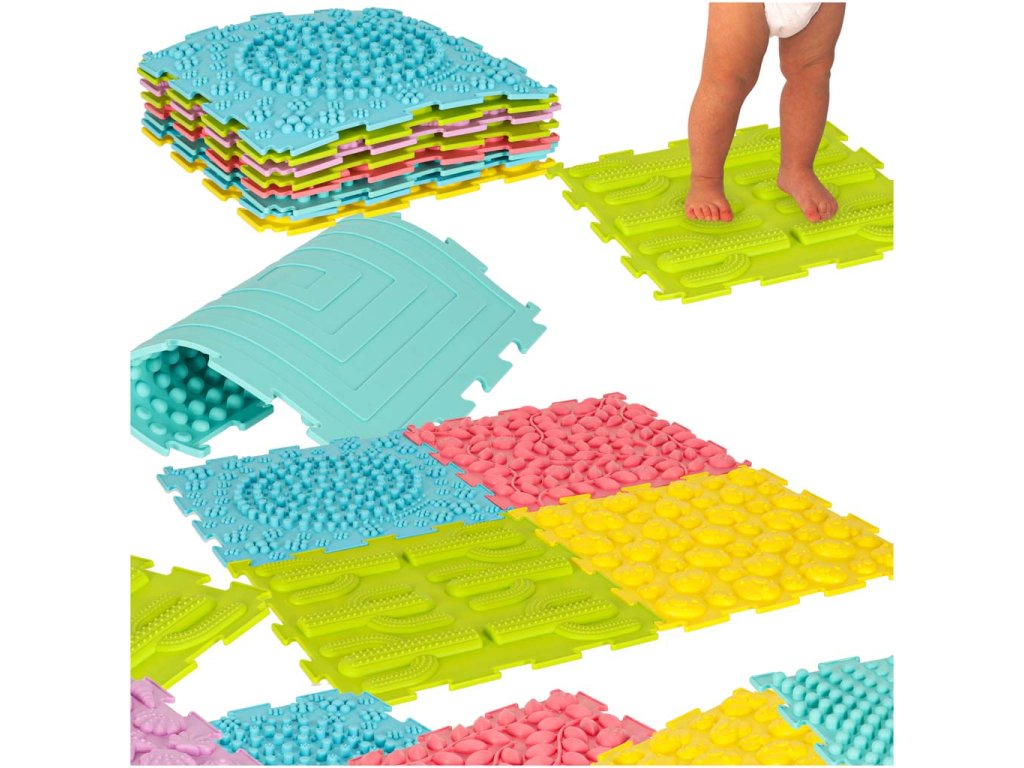 Sada obsahuje 8 skládaček se 6 různými strukturami, jejichž skládání bude nejmenší děti velmi bavit. Se senzorickou podložkou mohou děti zkoumat svět dotykem hmatových textur rukama nebo nohama. Chůze po podložce posiluje motorické dovednosti a pomáhá při udržování rovnováhy.