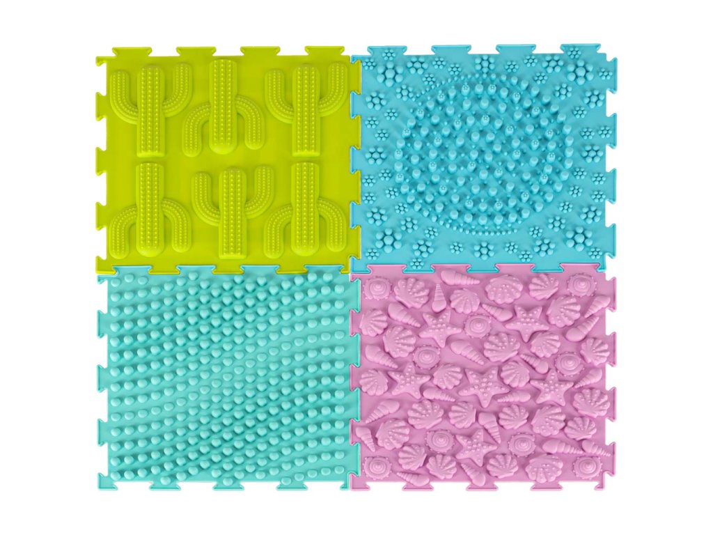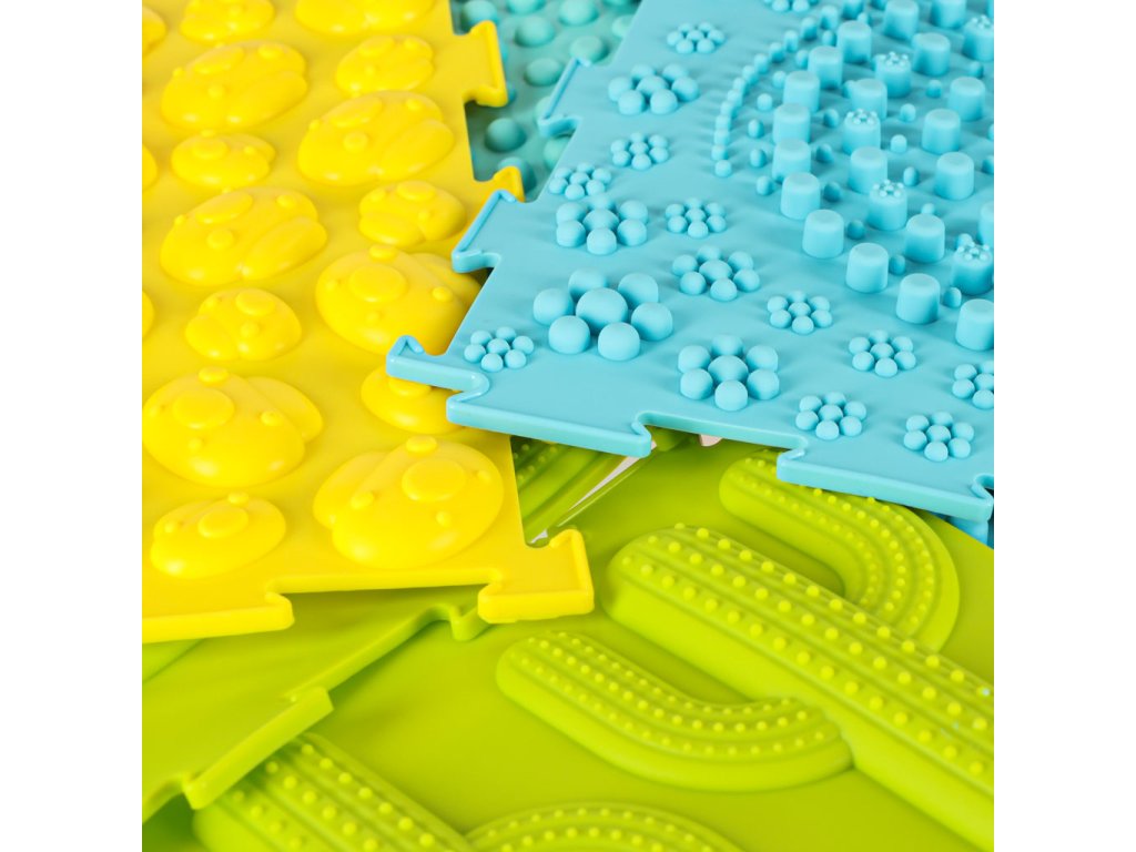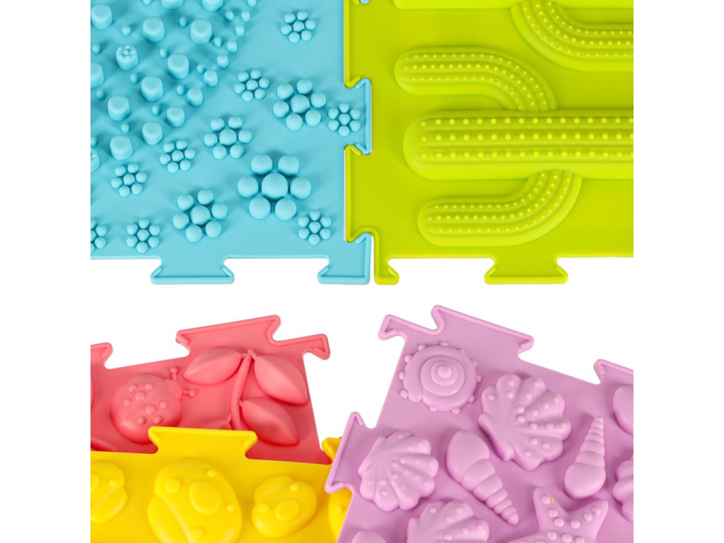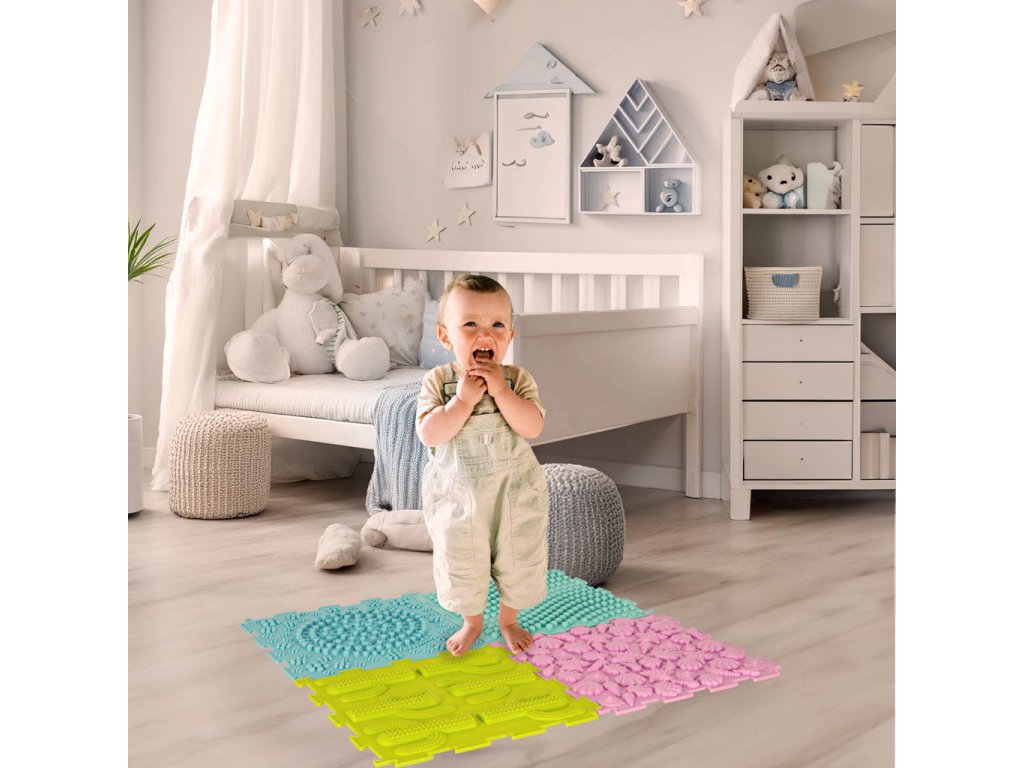 Sada obsahuje 8 skládaček se 6 různými strukturami, jejichž skládání bude nejmenší děti velmi bavit. Se senzorickou podložkou mohou děti zkoumat svět dotykem hmatových textur rukama nebo nohama. Chůze po podložce posiluje motorické dovednosti a pomáhá při udržování rovnováhy.
