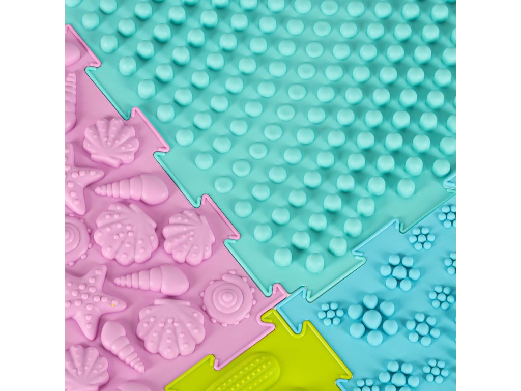 Senzorická podložka montessori pro masáž nohou, 8 dílků, pastelové barvy