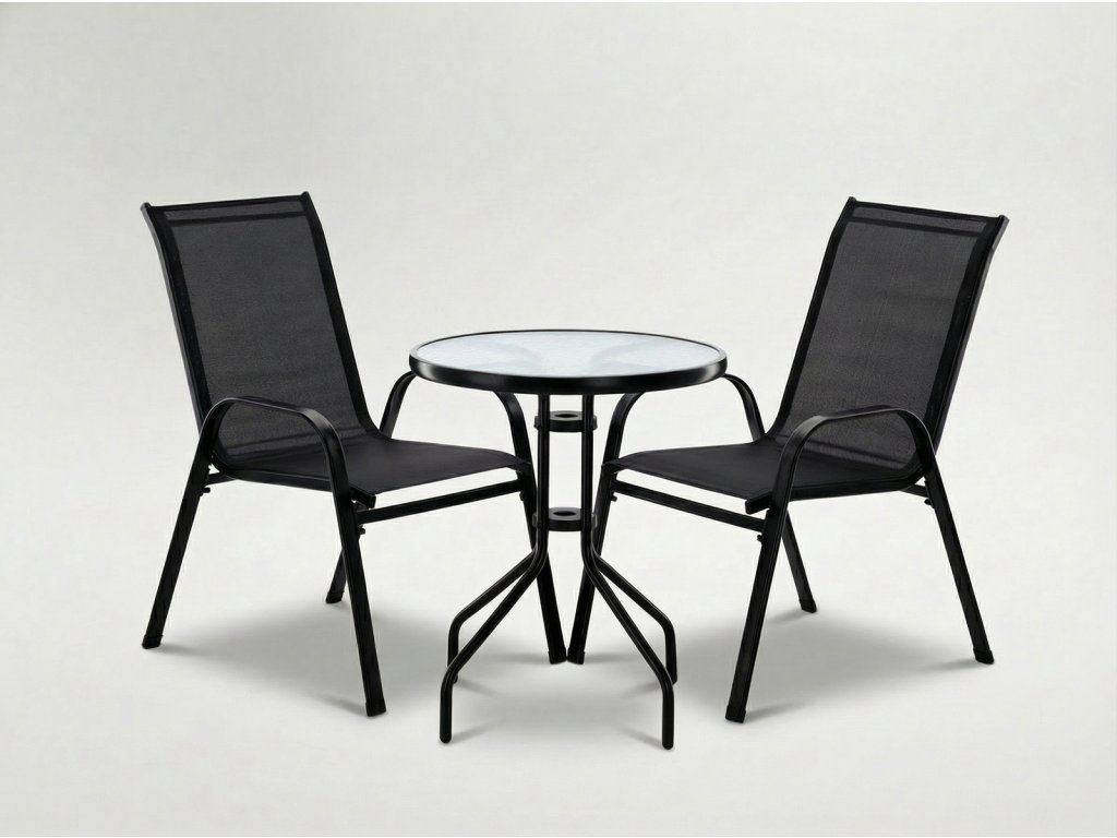 SET BALKONOVÉ NÁBYTKU - 2 KŘESLA + STOLEK - ČERNÁ