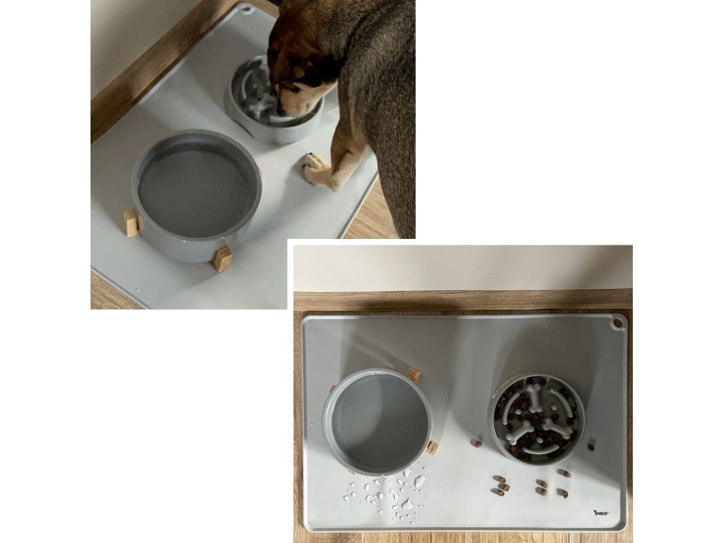Praktické řešení, které chrání podlahu a udržuje misky na místě během jídla.