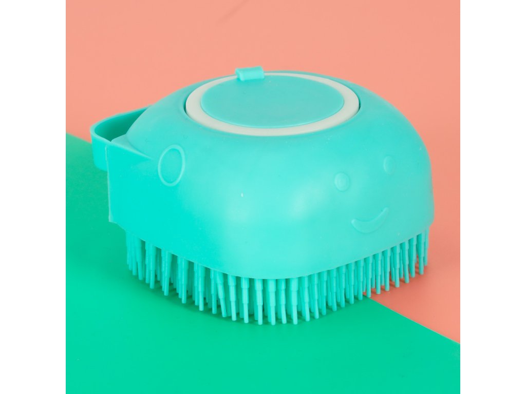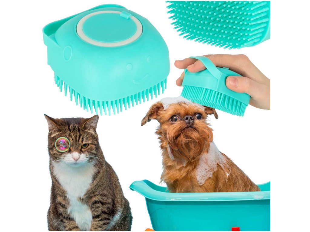 Silikonový kartáč s dávkovačem šamponu na mytí domácích zvířat.