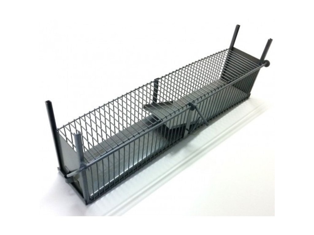Jedná se o univerzální past na odchyt škodné.Rozměry: délka 102 cm, šířka 20 cm, výška 21 cm. Průměr drátu 2 mm a rozteč mezi dráty 1,5cm