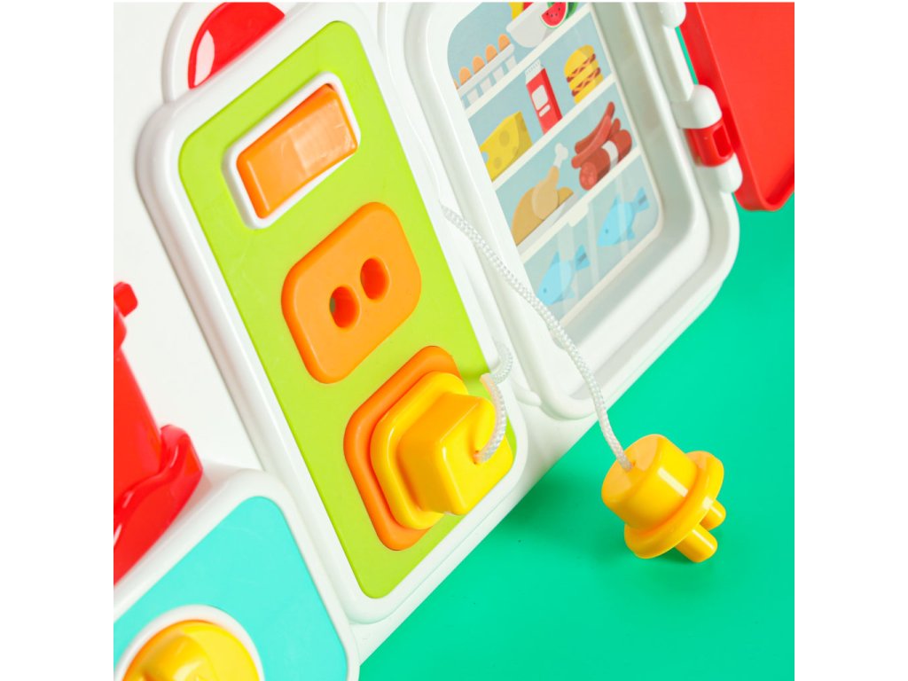 DĚTSKÁ MANIPULAČNÍ DESKA - MOBILNÍ KUCHYŇKA V PŘENOSNÉM KUFŘÍKU 18 MSC+
