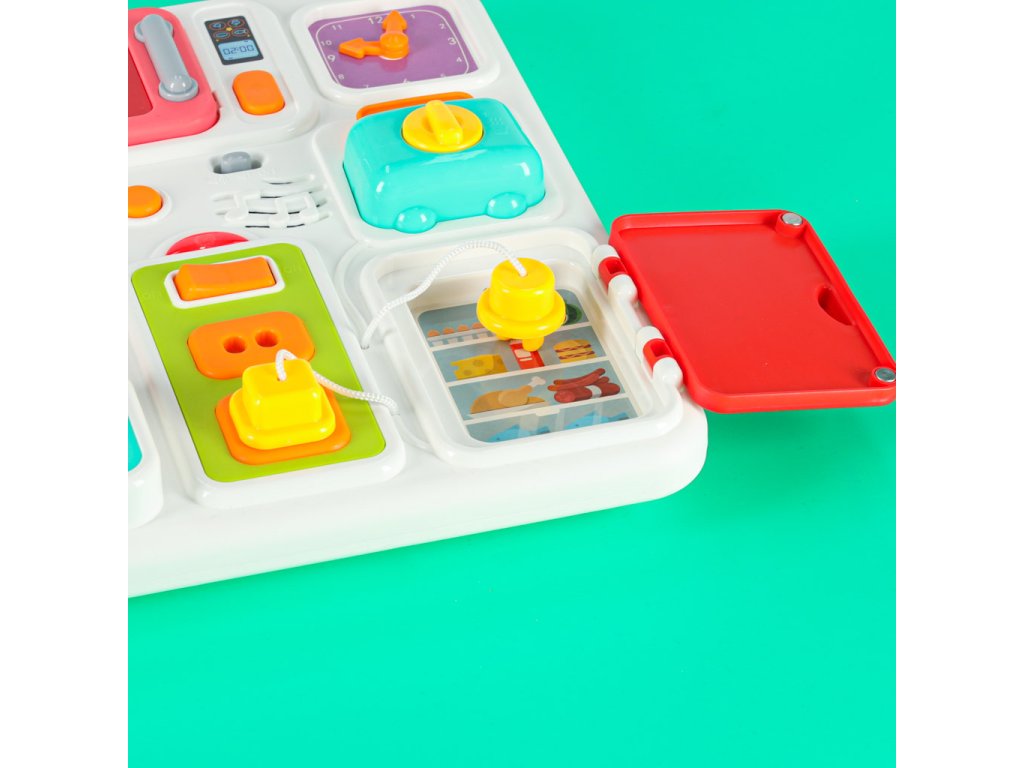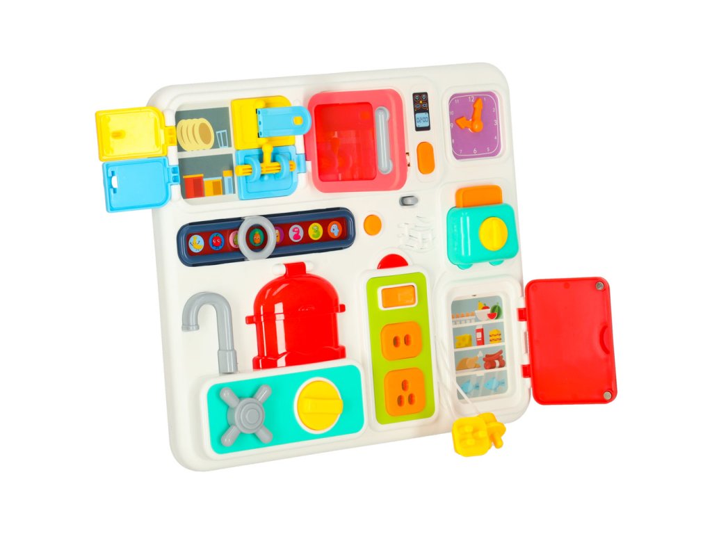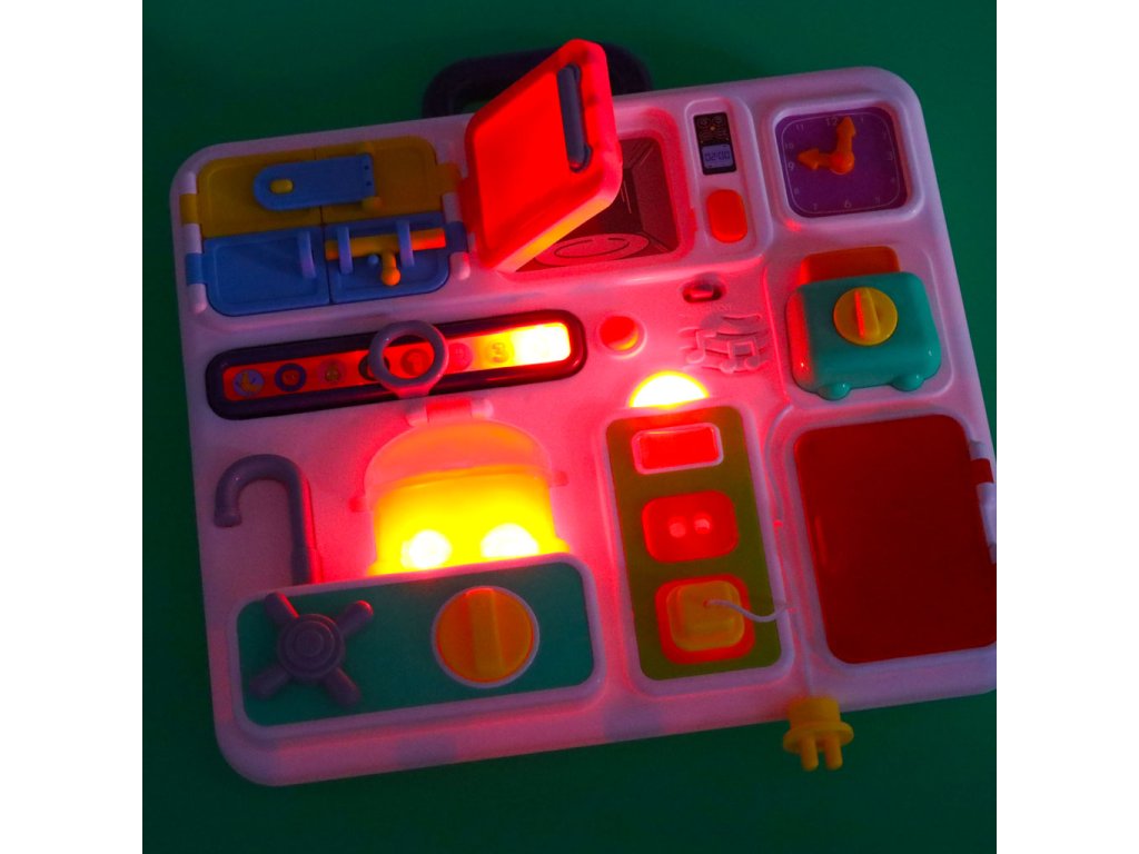 Smyslová manipulační deska montessori kuchyňské hodiny světlo zvuk